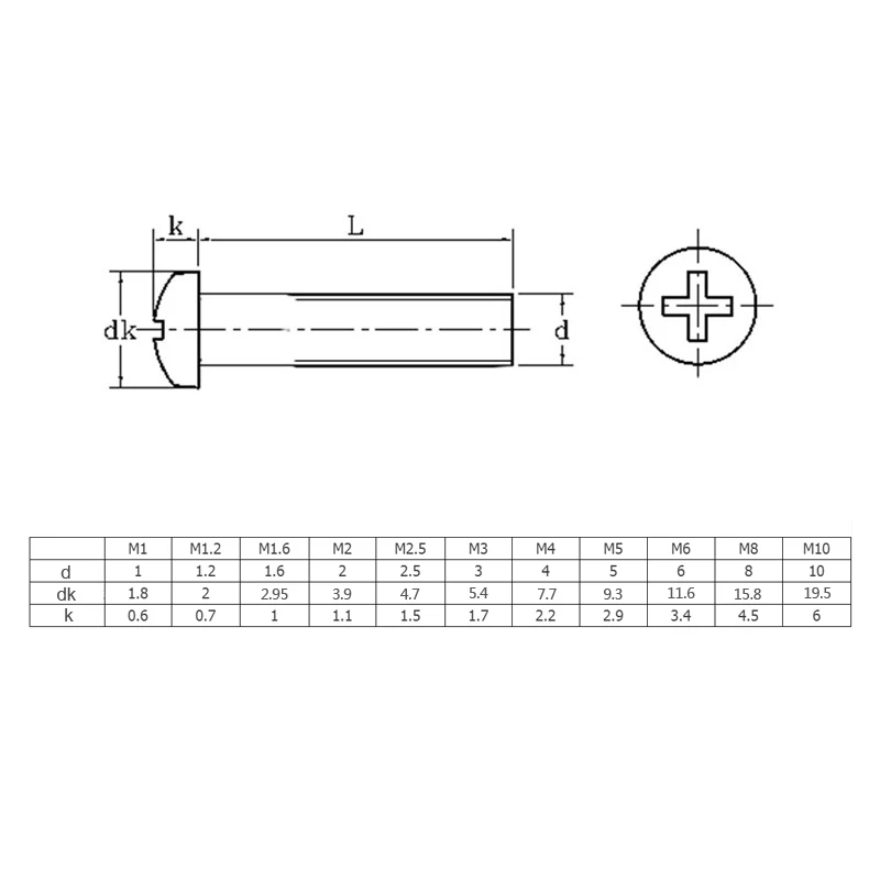 Металлические винты Phillips, 1050 M2 M2.5 M3 M3.5 M4 M5 M6 M8 A2 3...