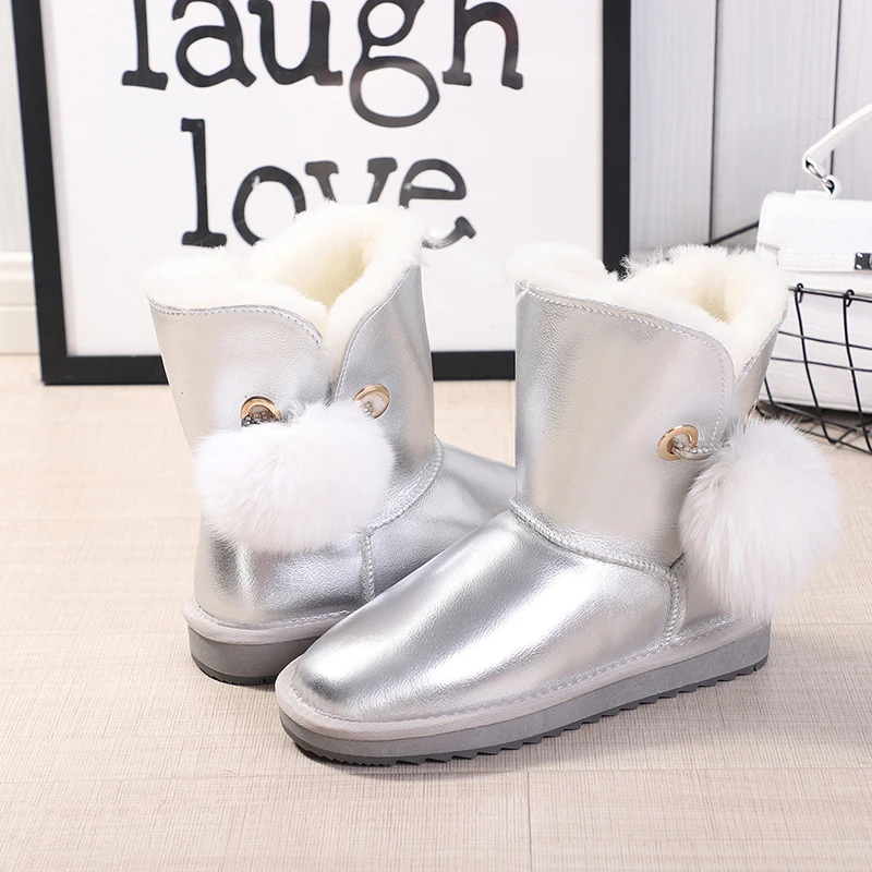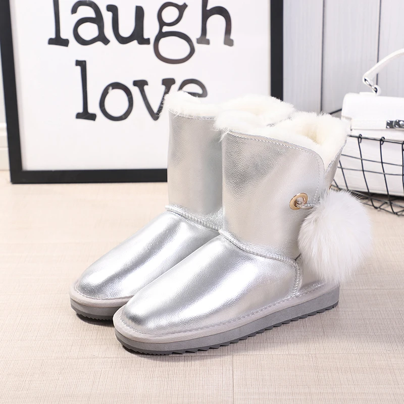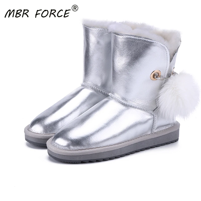 MBR FORCEклассические женские зимние ботинки из овечьей кожи в австралийском стиле; Теплая зимняя женская обувь; Водонепроницаемая Обувь с искусственным бриллиантом и лисьим плюшевым помпоном