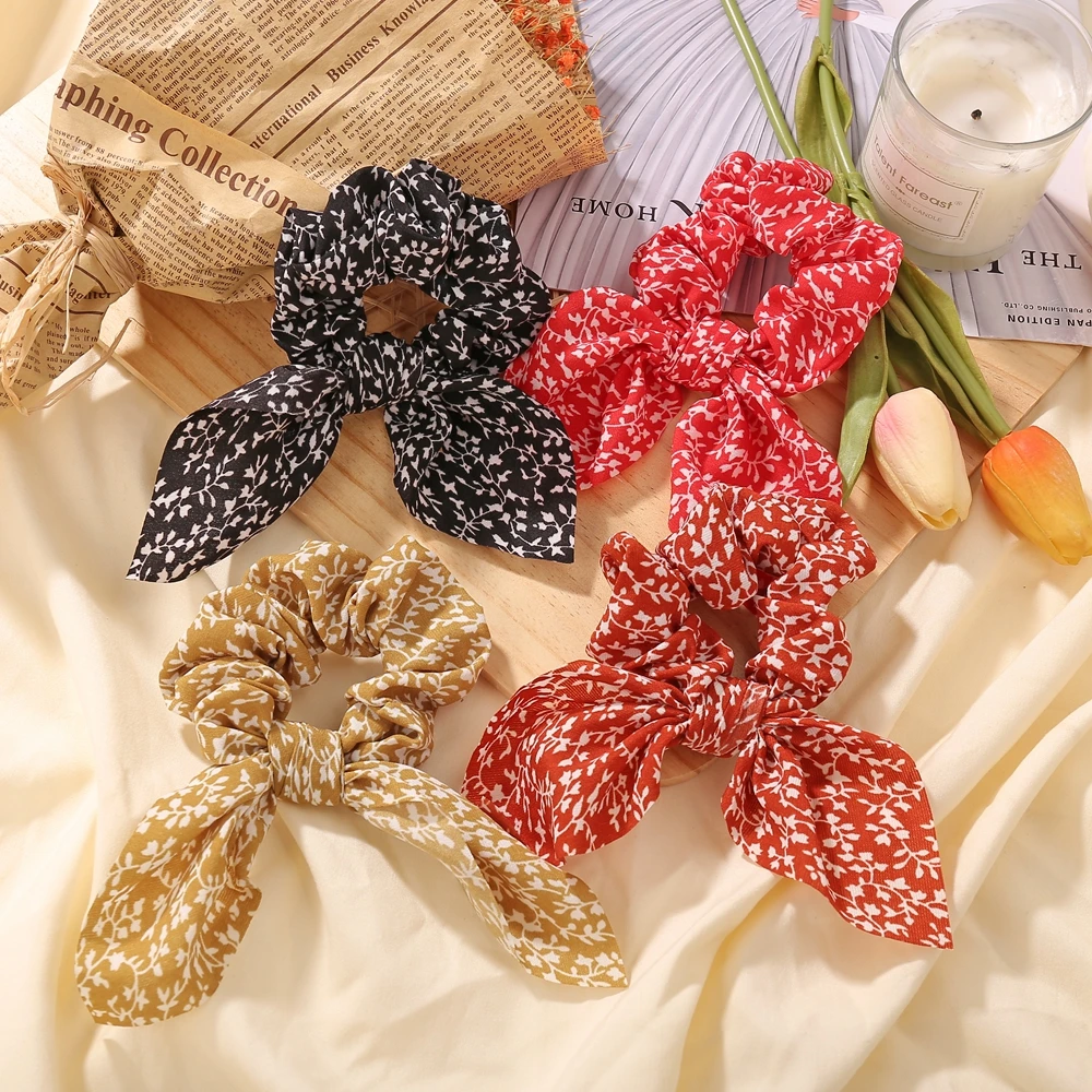 Модная одежда с цветочным принтом и бантом для волос Scrunchies жен...