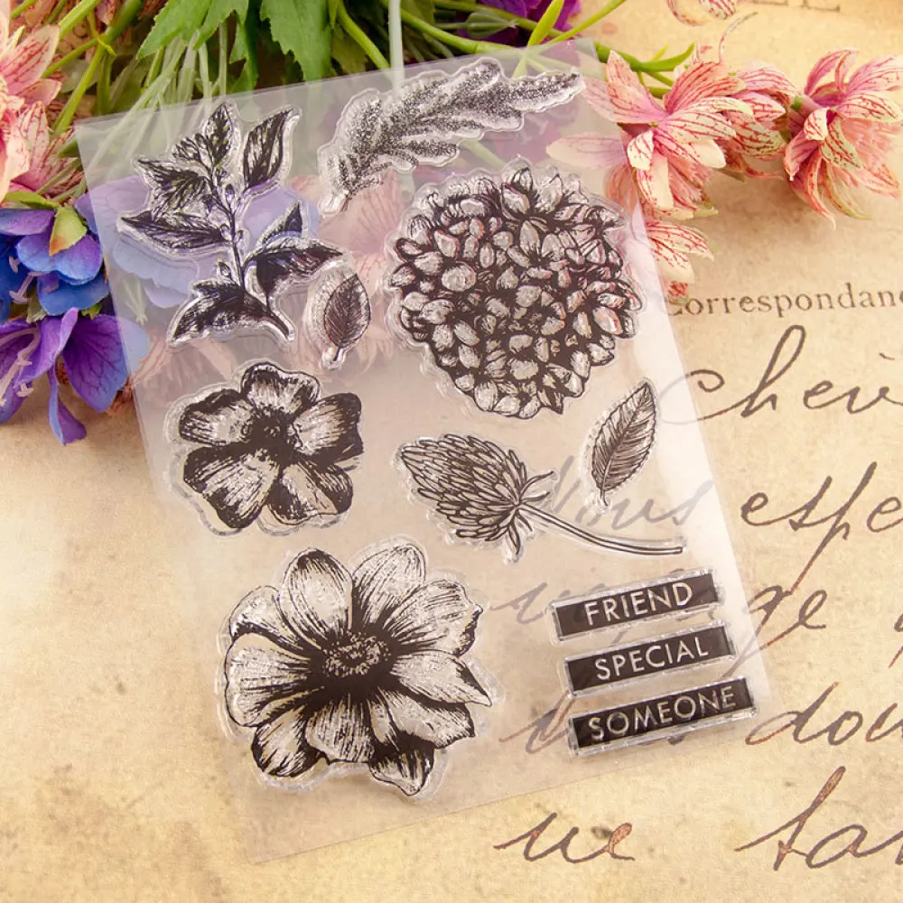 Прозрачные штампы с цветами и лепестками для рукоделия, прозрачные силиконовые штампы, резиновые штампы для скрапбукинга, декоративные изделия