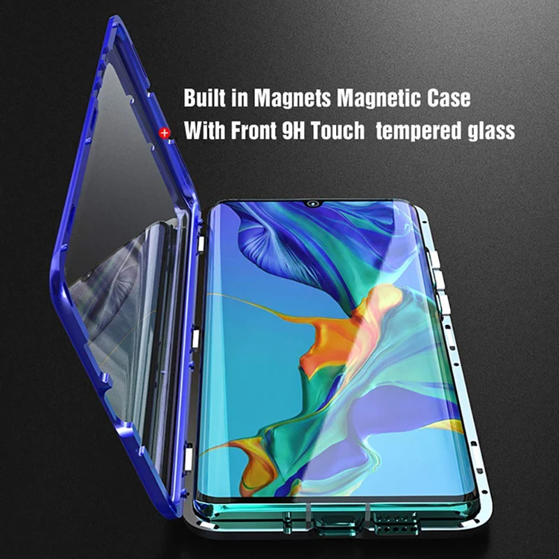 Двухсторонний Магнитный чехол из закаленного стекла для P40, P30, P20 Lite Pro, Honor V30, 20, 30, 9X, 30S Plus, Nova 7, SE Pro, металлический бампер