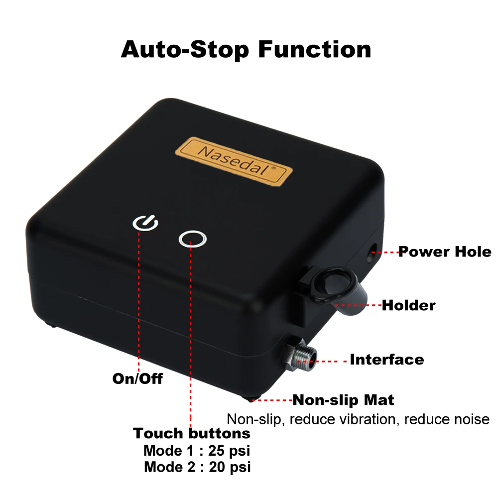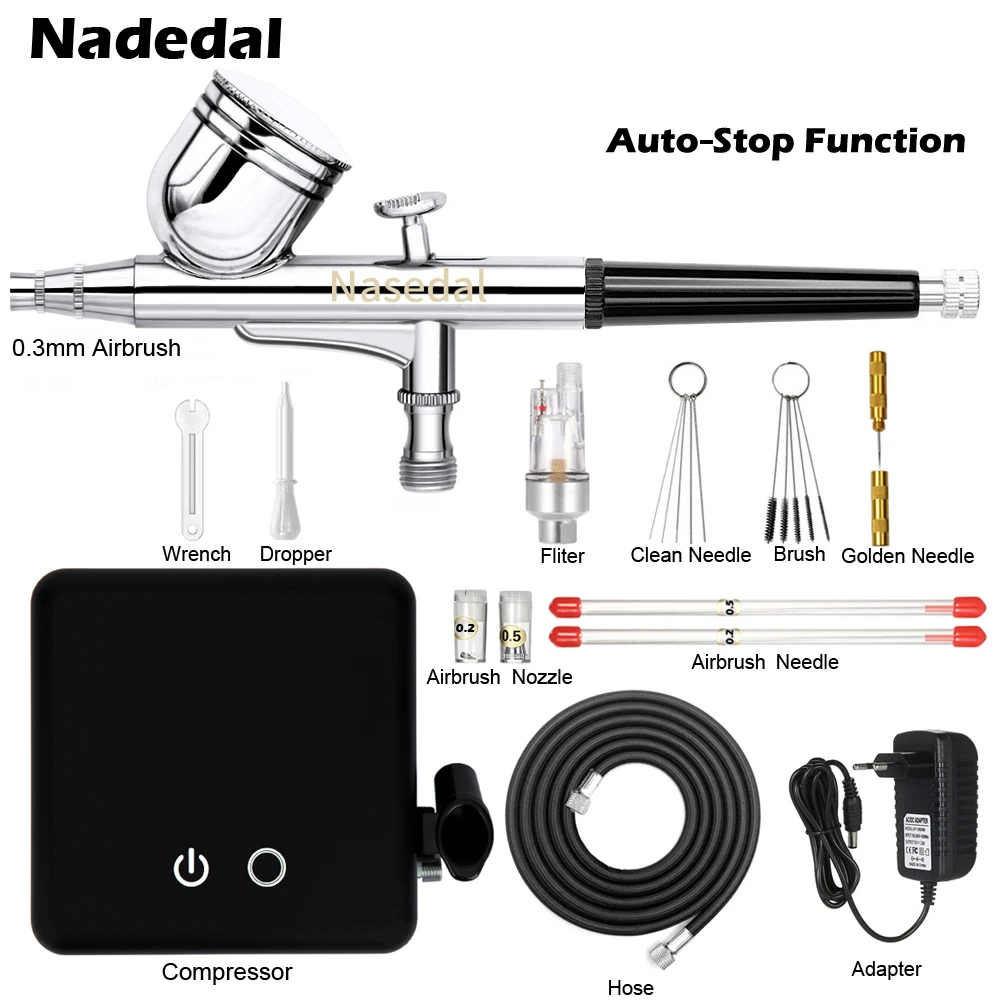 Аэрограф Nasedal с автоматической остановкой, функция двойного действия, пистолет-распылитель Набор Регулируемая мощность, сенсорный переключатель