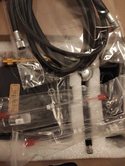 Доставка ОЧЕНЬ долгая, в Сочи пришел на 96 день. Сам набор неплох, красит ровно, пульсации нет. Для лучшего качества окраски иглу нужно полировать. Удивительно, но на соплах есть резиновые прокладки. Спиртовые акрилы продувает хорошо, водные практически никак. Краски "Звезда" акрил и мастер-акрил через сопло 0.3 не захотели идти ни в какую. Для начального уровня и понимания принципов работы с аэрографом за свою цену очень хорошо. Расстраивает отсутствие баночки для промывки, придётся самому делать.