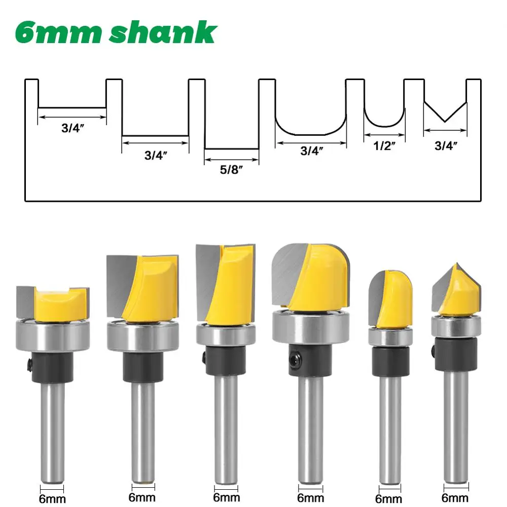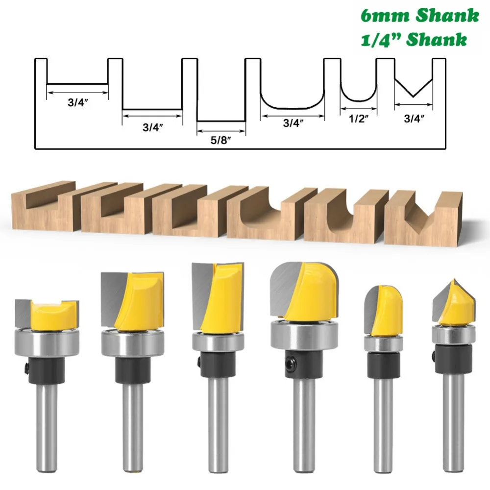 Фреза для обработки дерева, насадки 14 или 6 мм с хвостовиком, 6 шт.
