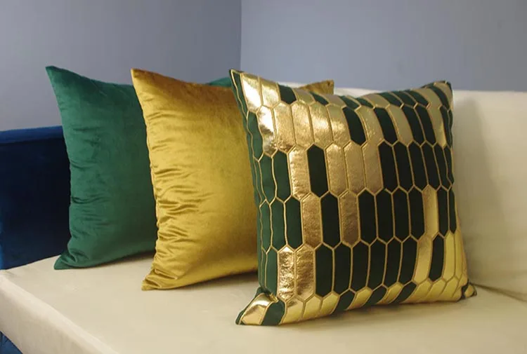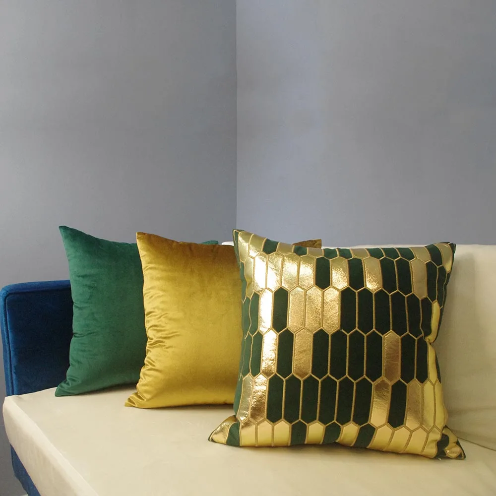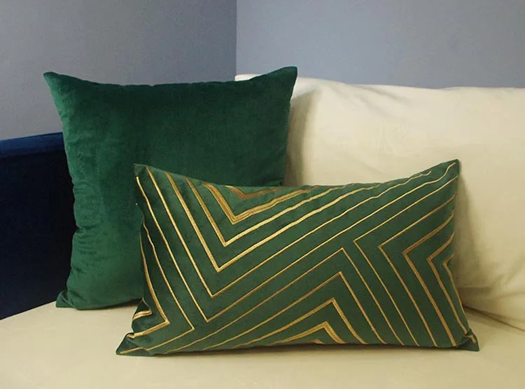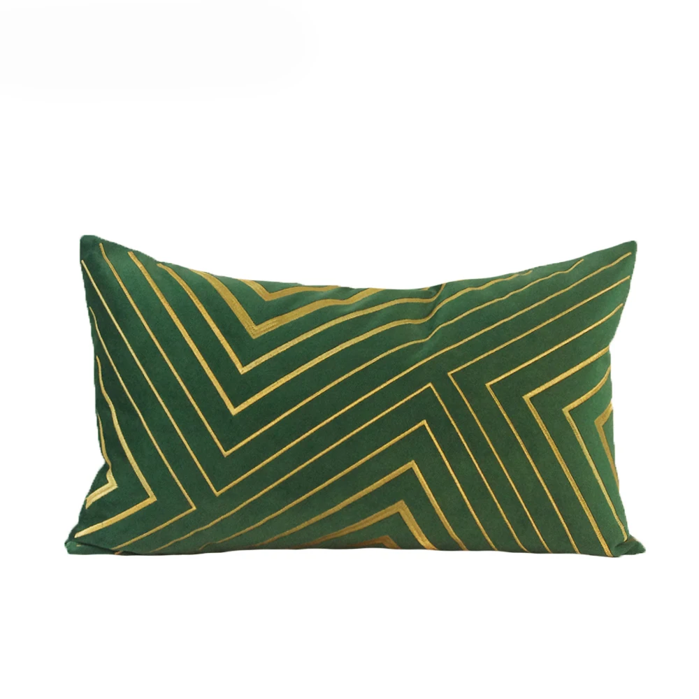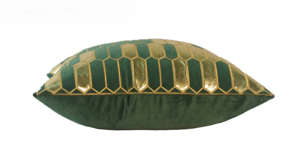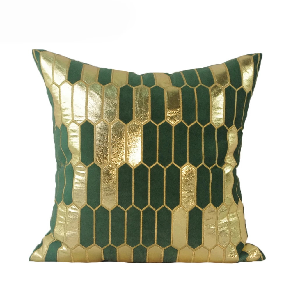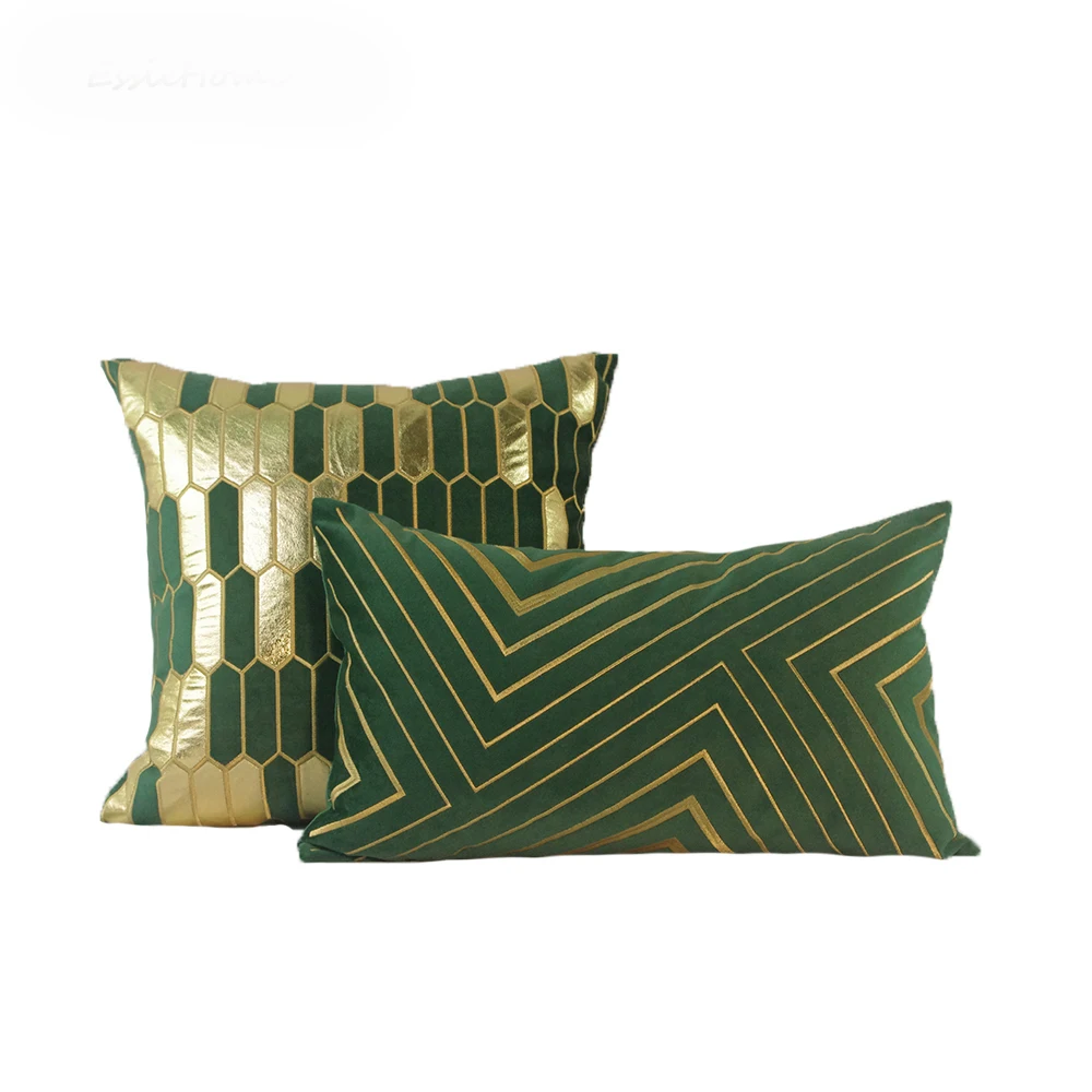 Бархатный Чехол на подушку с геометрическим узором, зеленый, золотой