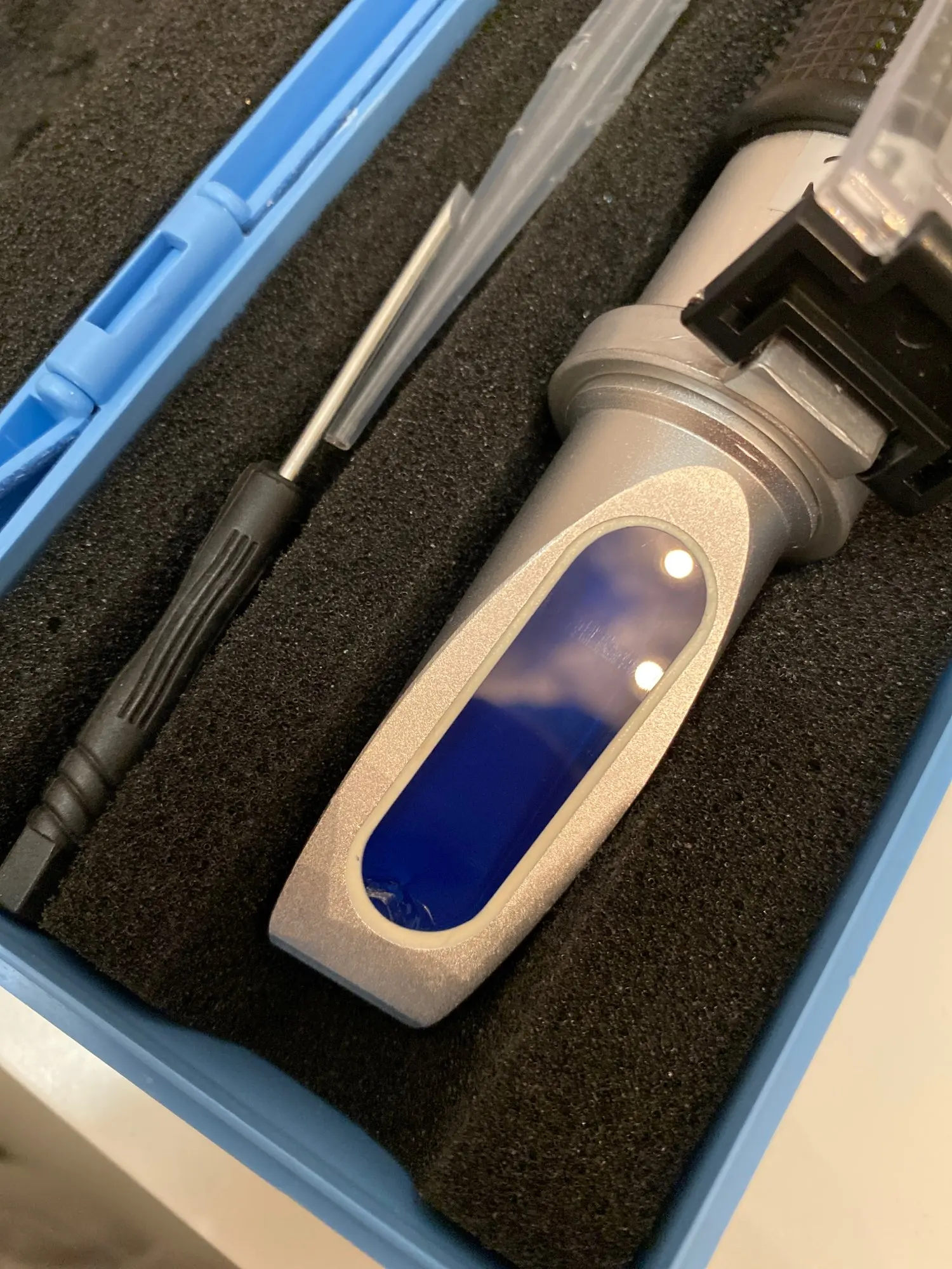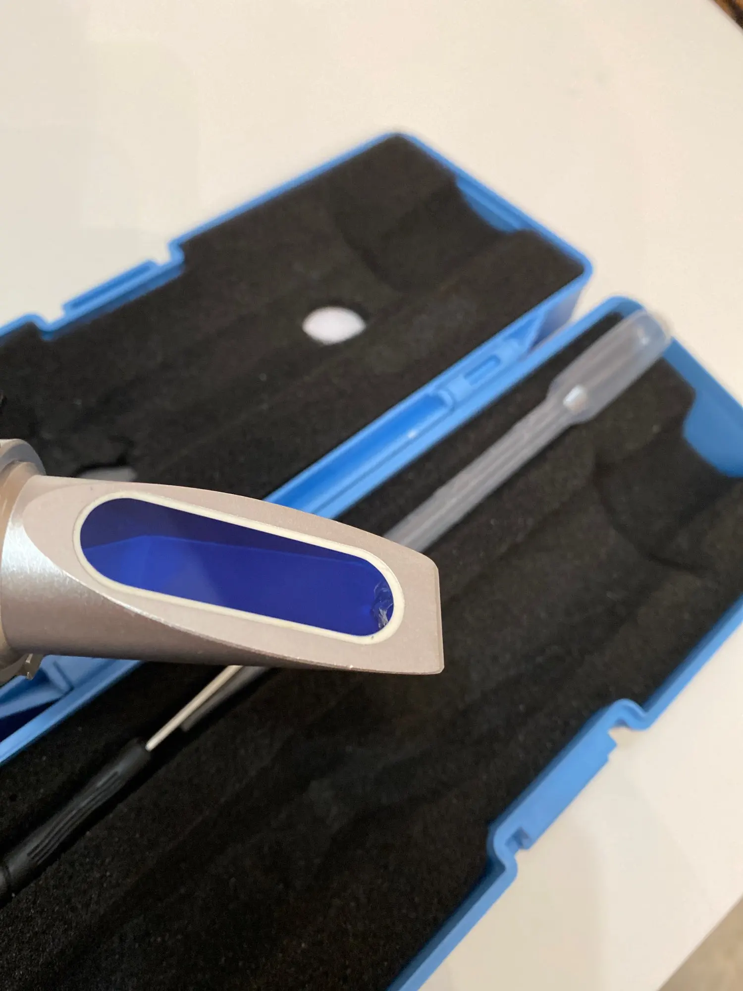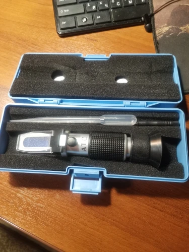 Доставка соответсвует заявленным срокам. Несмотря на качественную упаковку, кейс приехал с отломанным язычком. Считаю необходимым при транмпортировке подкладывать под шторку либо салфетку, либо пленку, так как шторка пластмассовая и подвижная, елозит по призме на сухую, царапая её. Не регулировал, так как пришёл отюстированным. Проверил на незамерзайках и антифризе. Антифриз совпал +-1градус, а вот изопропаноловая незамерзайка неинформативно показывает. Заявлена -20, рефрактометр показал около 19-20, но по факту при минус 12 уже кисель и на стекле когда щётка проходит, размазывая её по стеклу авто, незамерзайка кристализуется и образует узор, закрывая обзор. При минус 15 она уже не льётся, потому как начинает фракциями превращаться в мороженное. Плохо, что нет градации метаноловой незамерзайки. Нашёл в просторах интернета придуманную шкалу на основе опытных измерений, для сравнения с штатной шкалой. Показания совпадают с действительной способностью незамерзайки, но с высокой погрешност