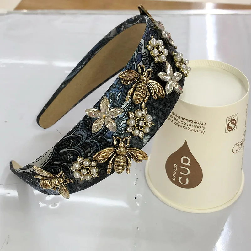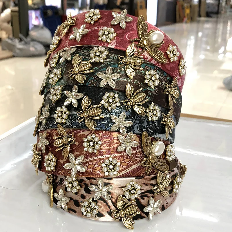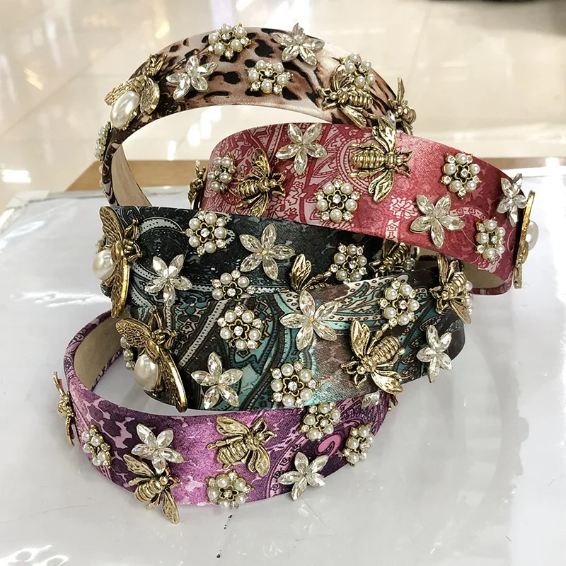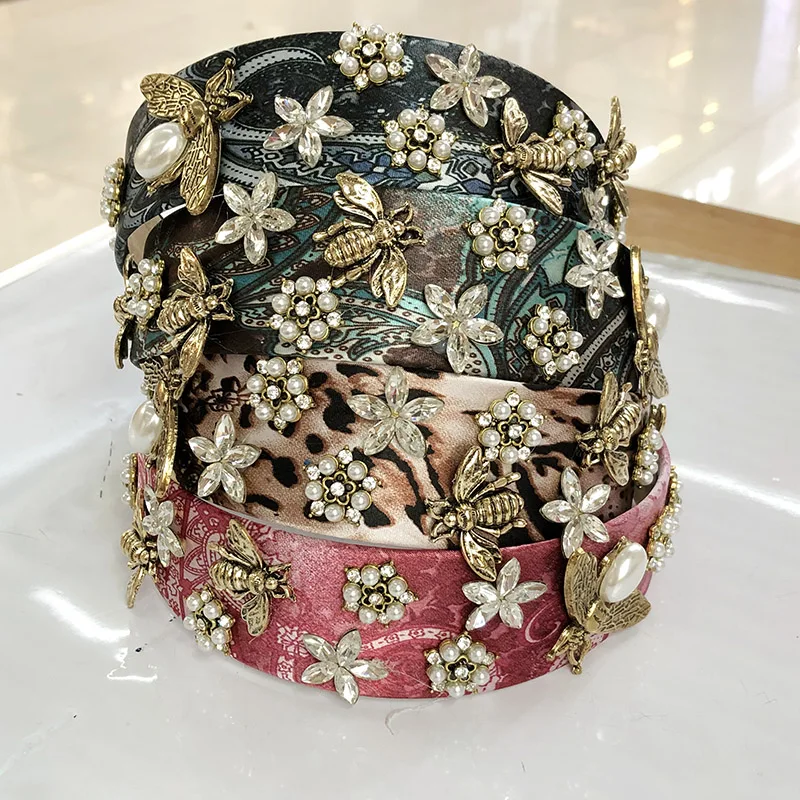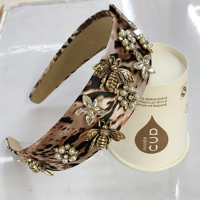 Повязка для волос с леопардовым принтом в стиле барокко для женщин и девочек, большие цветные стразы, аксессуары для волос