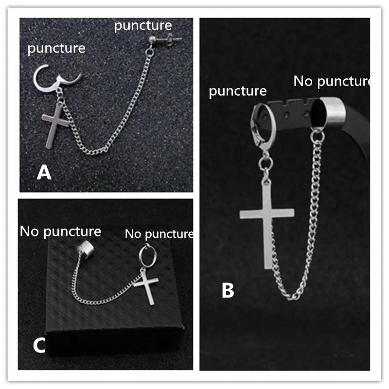 Ушные манжеты из нержавеющей стали подвеска на цепочке серьги крест...