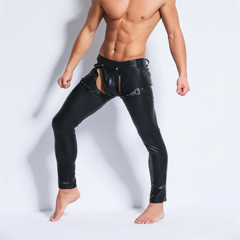 Латексные штаны для геев, с открытой промежностью, из лакированной кожи