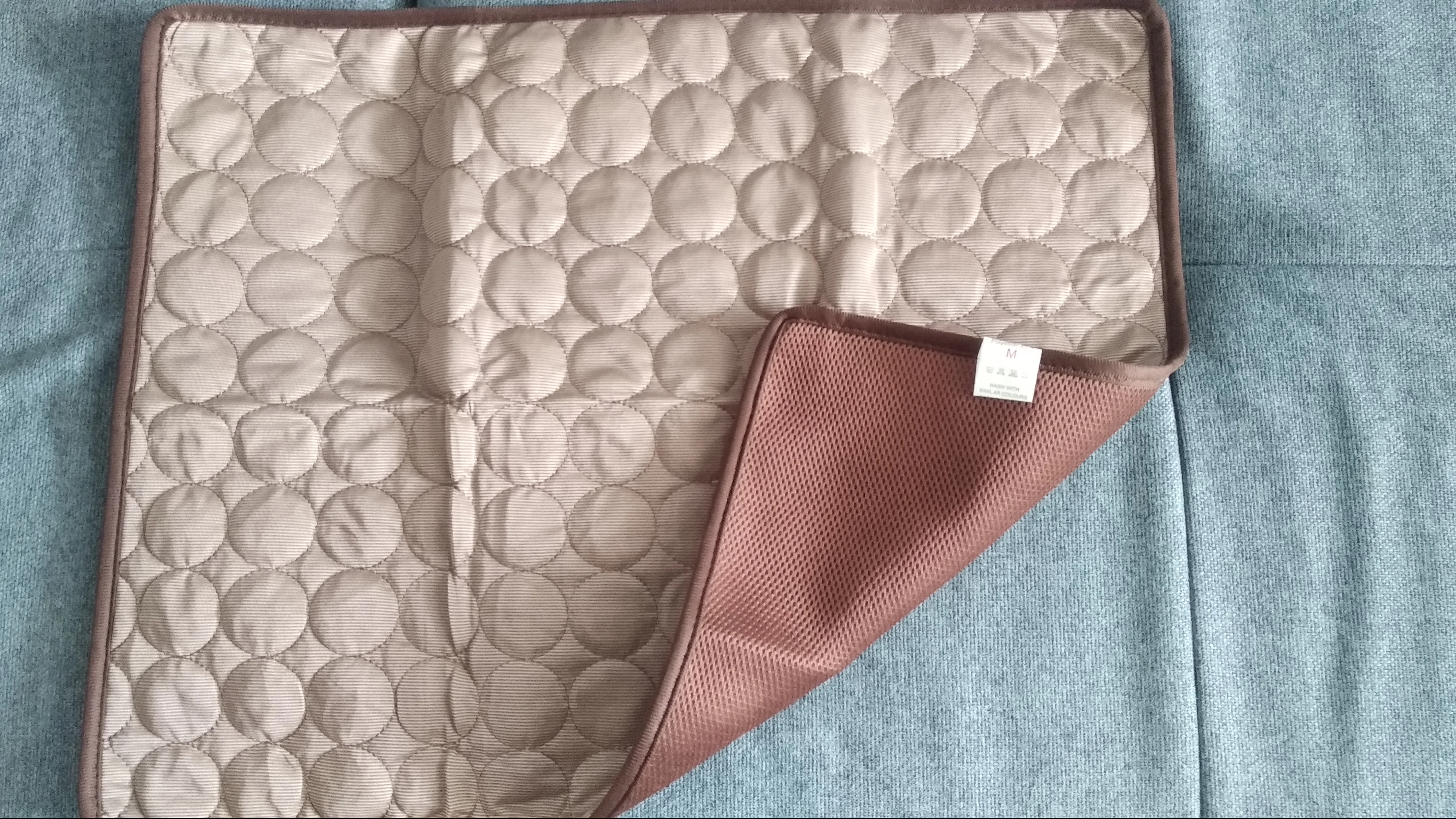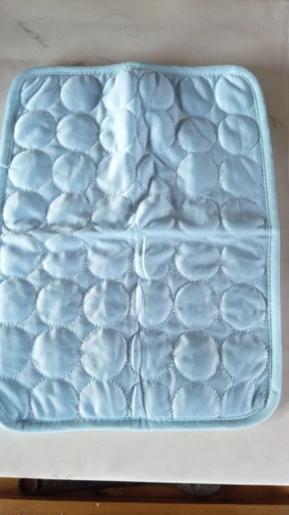 Точное описание товара, быстрая доставка в Украину за 2 недели. Верх коврика прозладная на ощупь ткань, низ - дышащая мембрана, как на спинках туристических рюкзаков. Брала 2 размера S и М. S совсем маленький, подойдет котятам и собакам мелких пород. Для котов средних размеров и весом от 3 кг нужен коврик M