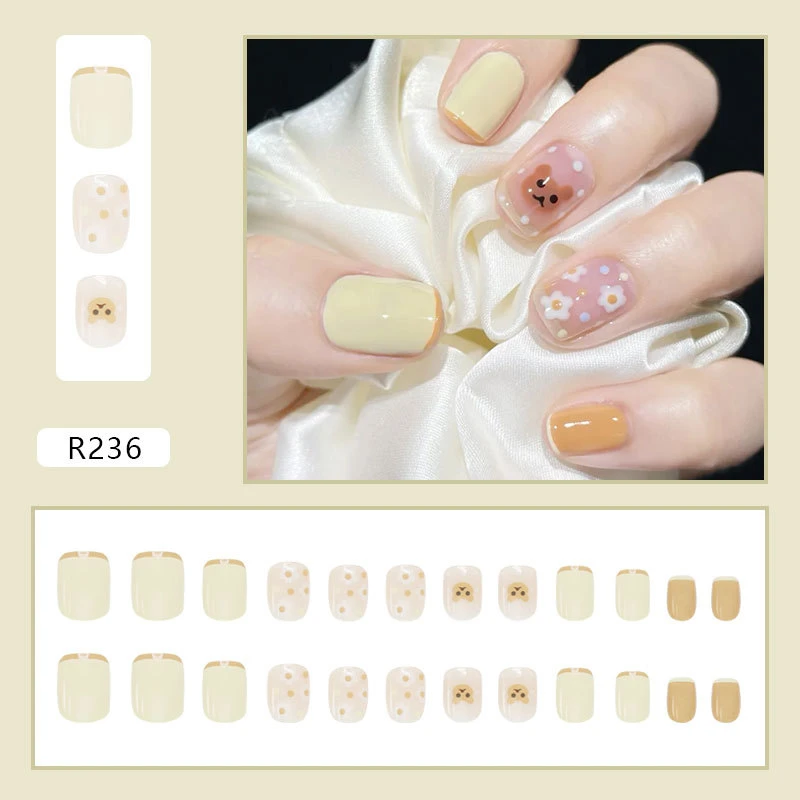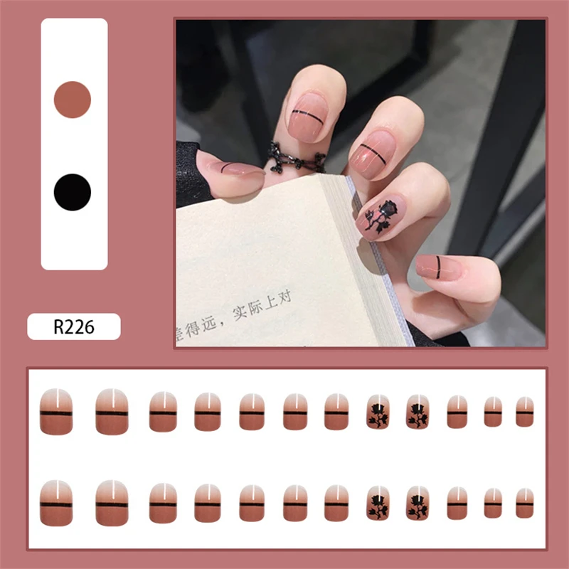 Новинка 2022, 24 шт.компл., милые дизайнерские накладные ногти с ри...