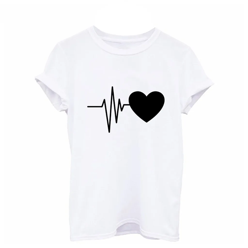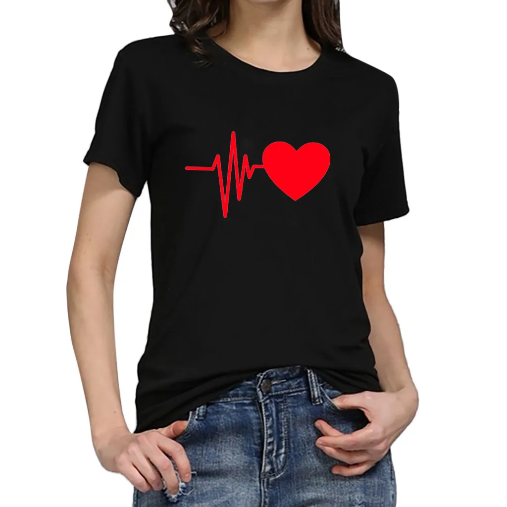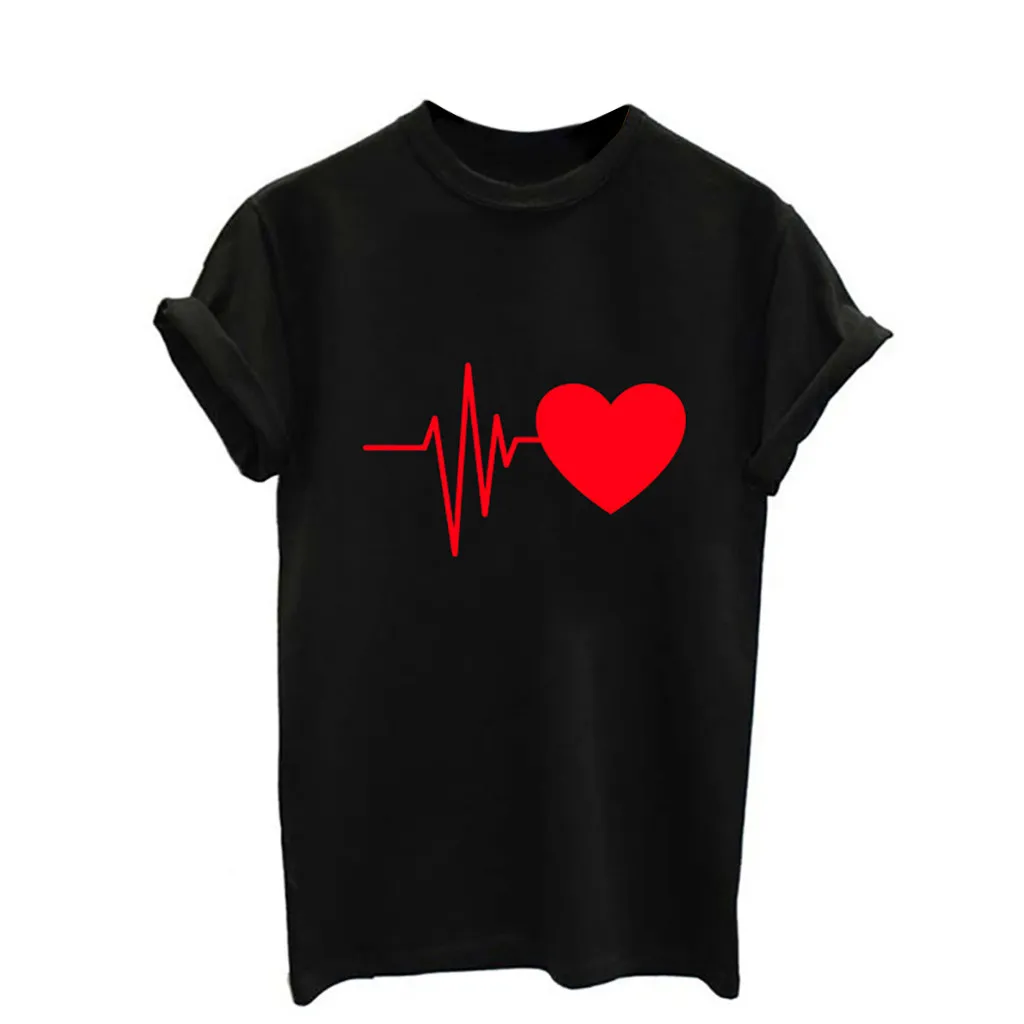 Летняя новая футболка с принтом в форме сердца, Женская Повседневна...