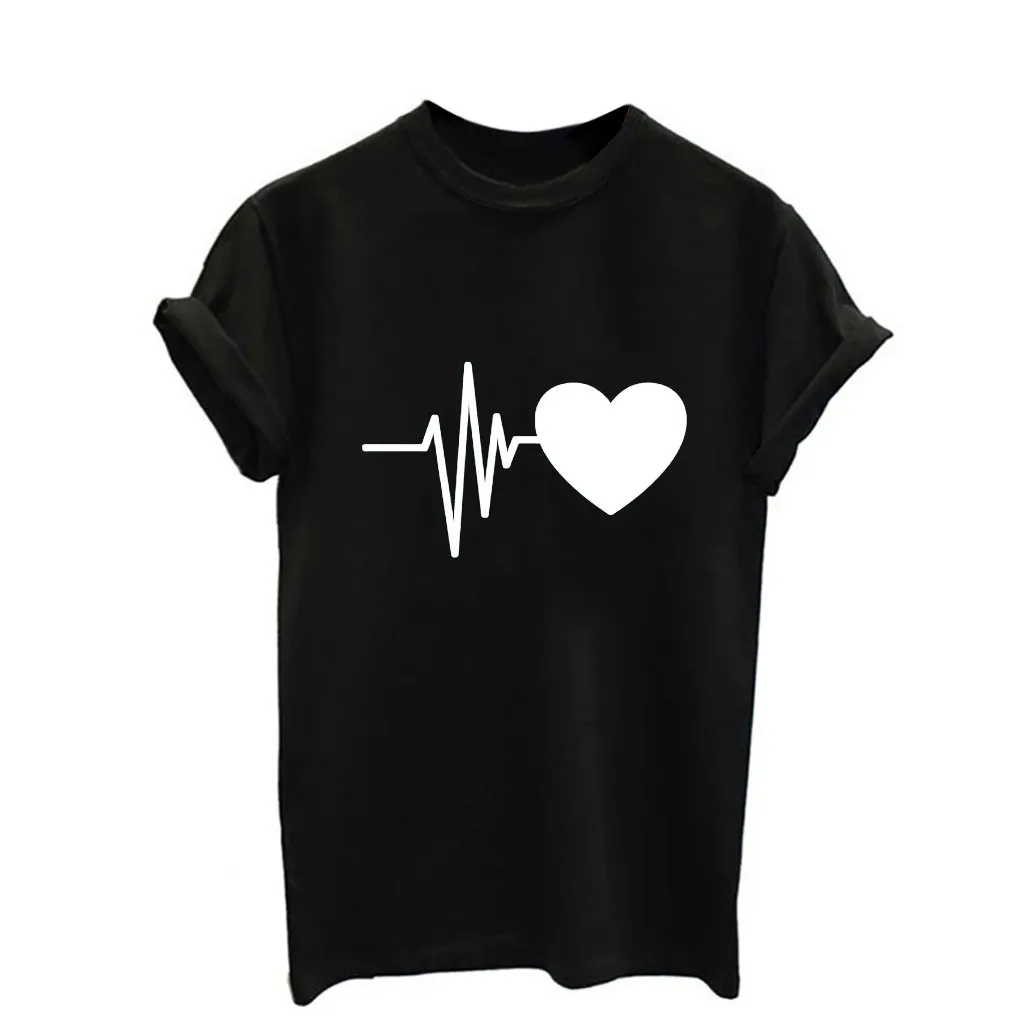 Модная женская Свободная футболка с короткими рукавами и принтом сердца, повседневный топ с круглым вырезом