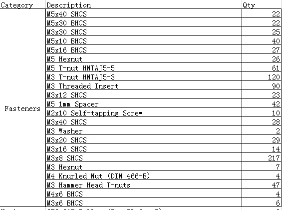 Полный комплект крепежных винтов и гаек для 3D-принтера Voron 2,4