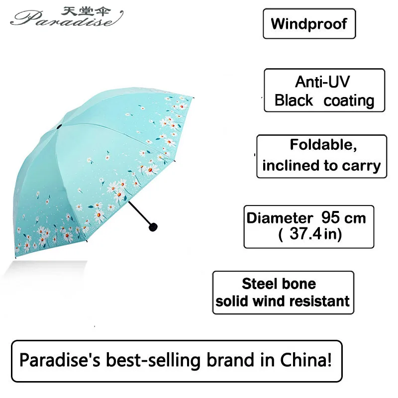 Цветочный Зонт Hangzhou Paradise брендовый Женский 3 складной супер светильник зонтик защита от УФ дождя Модный женский двухслойный зонтик