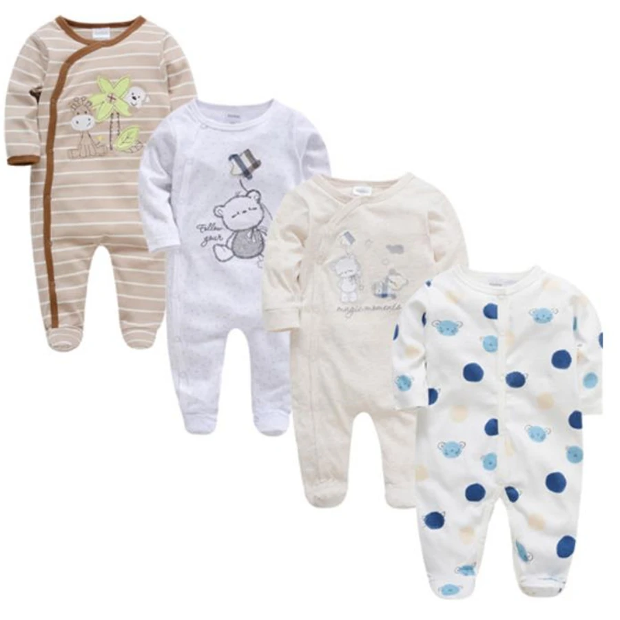 Пижамы с длинными рукавами из 4 предметов детские пижамы-комбинезоны для девочек одежда для малышей с рисунком Roupas Bebe De комбинезон для маленьких мальчиков