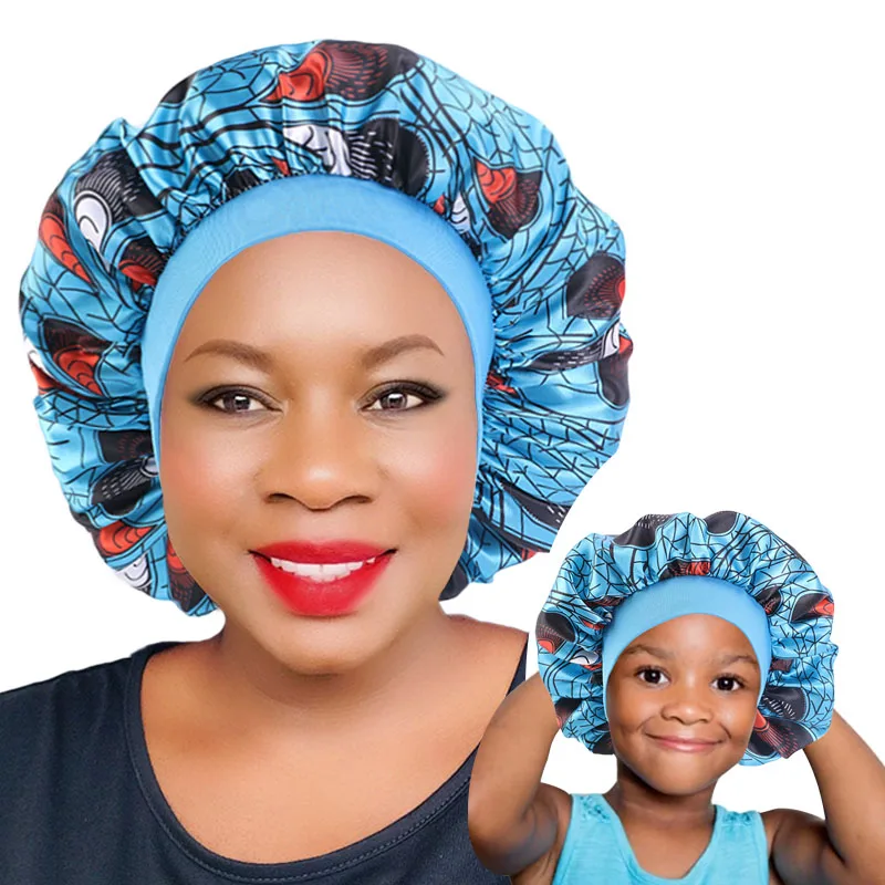 Сатиновая шапочка для мамы и ребенка, 2 шт., уход за волосами для девочек, женская ночная шапочка с Африканским принтом, Детский мягкий головной убор