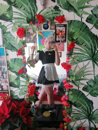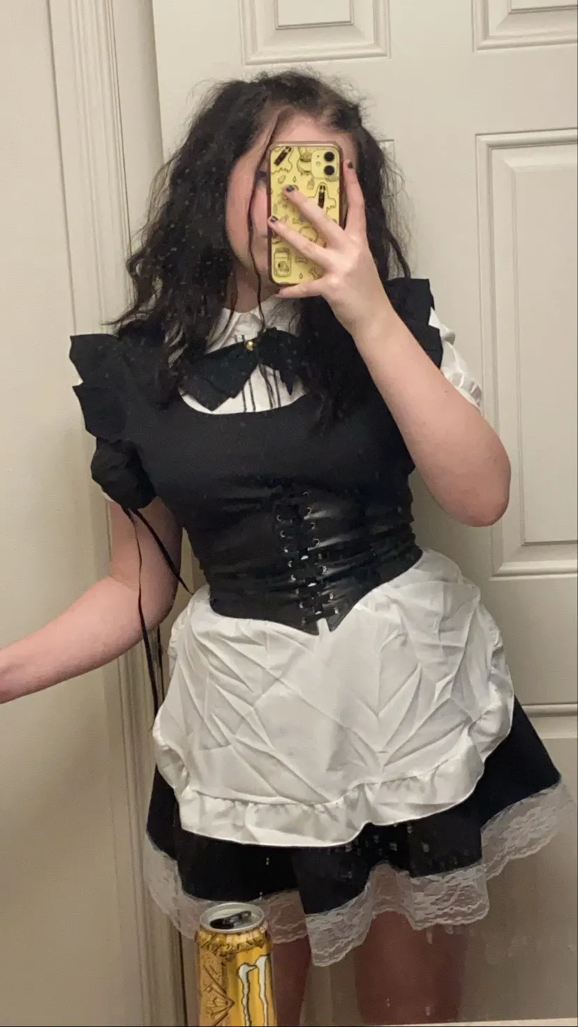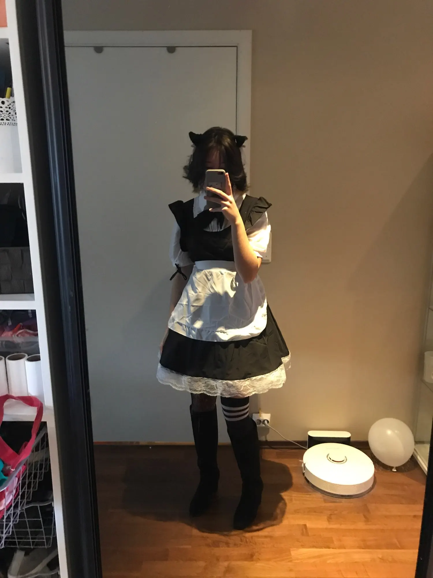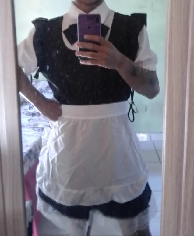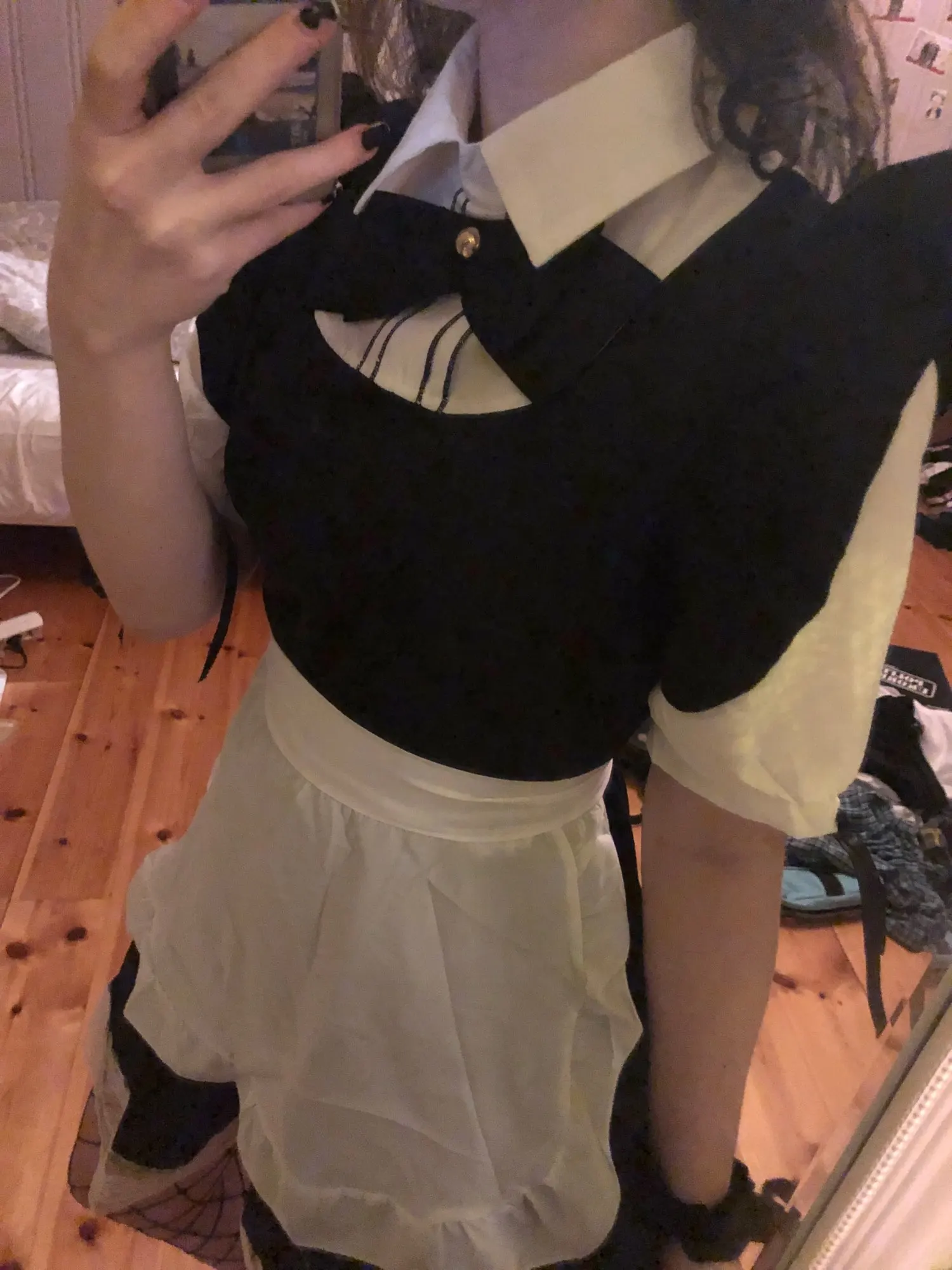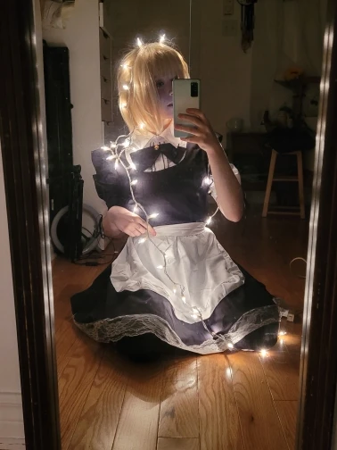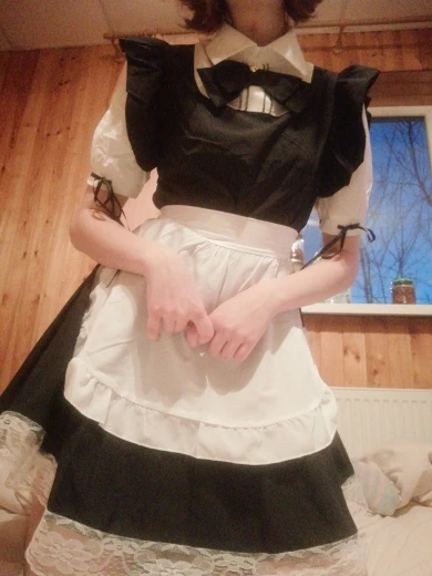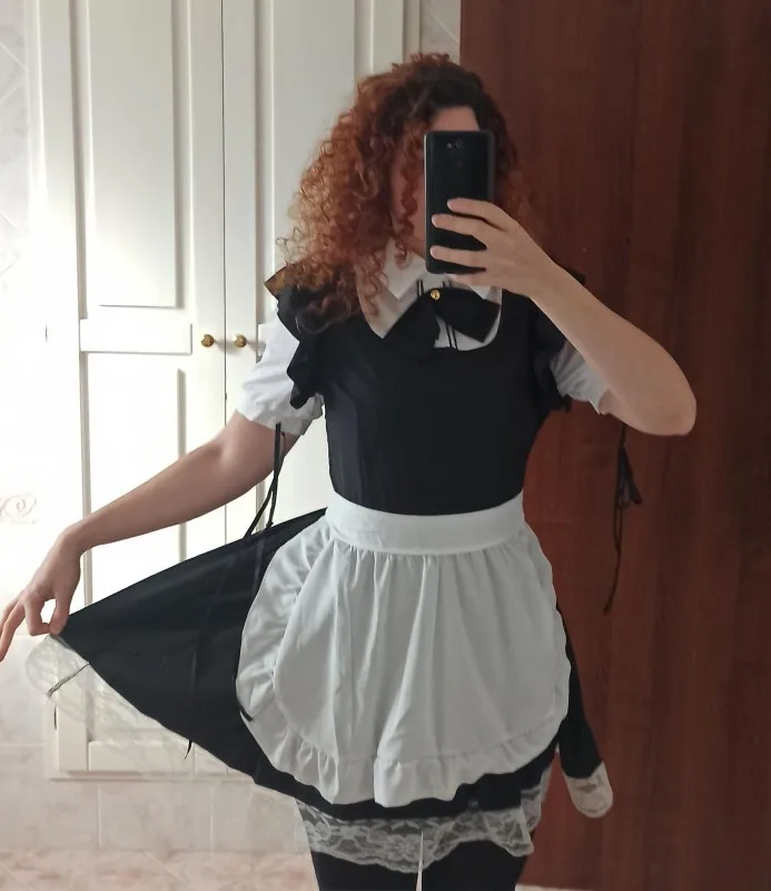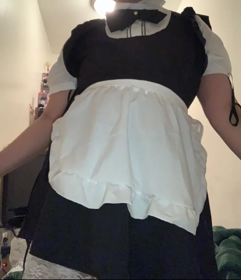 Костюм хорошо сидит, я получил 2XL. Белые секции имеют несколько сгибающихся линий, но это не то, что нельзя зафиксировать. Юбка немного плоская, но если у вас есть что-то, что вам нужно, она красиво затягивается. Фартук отделен от платья, но все остальное соединено.
