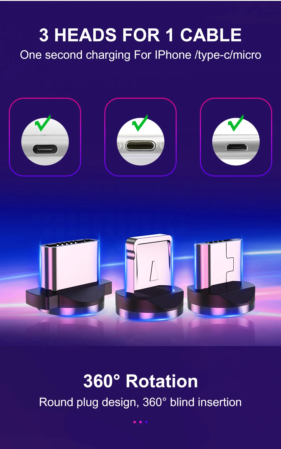 FeatureLED Light + 3 in 1 + Round 360° Magnet plug
