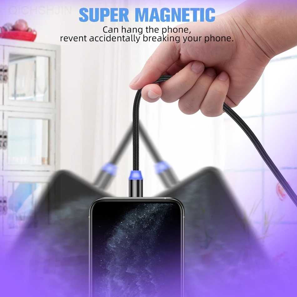 Светодиодный магнитный кабель Micro USB Type C для быстрой зарядки, Магнитный зарядный шнур USBC Microusb, Android, мобильный телефон, кабель для iPhone 11 Pro
