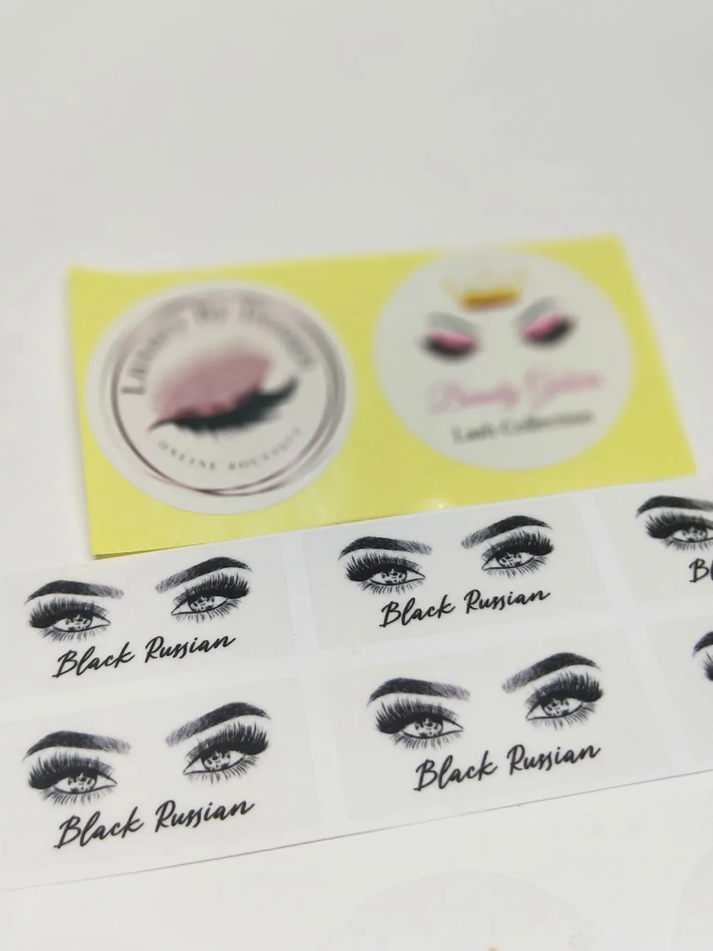 100 шт. круглые прямоугольные прозрачные наклейки с логотипом ресниц, визитница, пользовательская этикетка, норковые ресницы, бумага, блеск для губ, логотип в виде тюбика