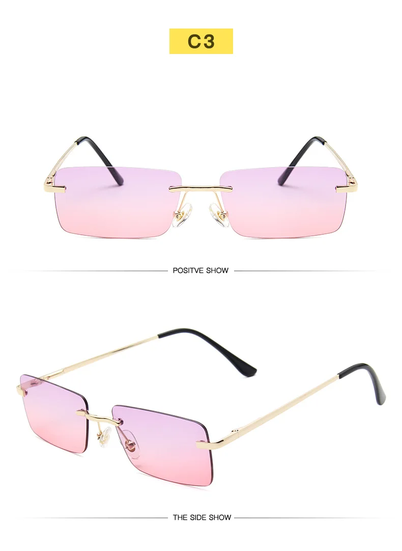 Прямоугольные солнцезащитные очки без оправы женские брендовые дизайнерские очки мужские ретро стимпанк Солнцезащитные очки винтажные маленькие оправы очки