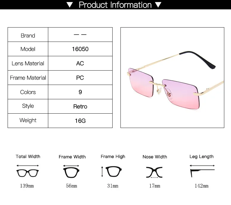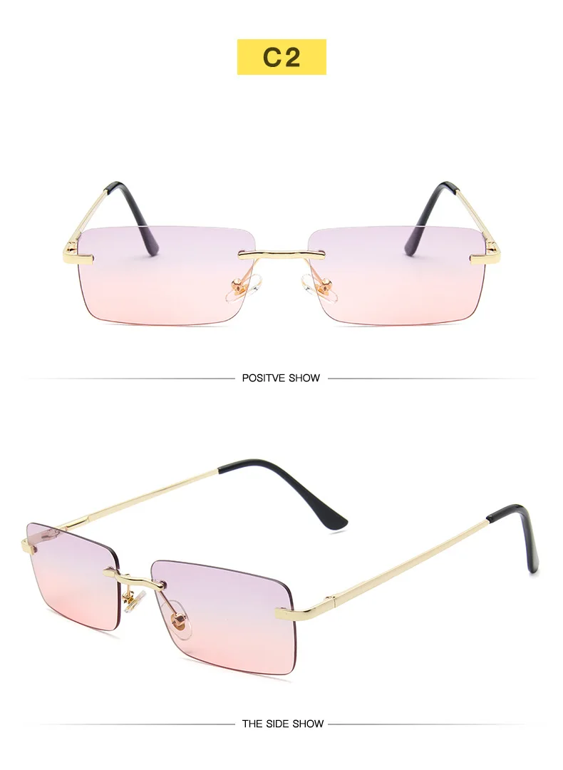 Солнцезащитные очки без оправы Женские винтажные квадратные прямоуг...