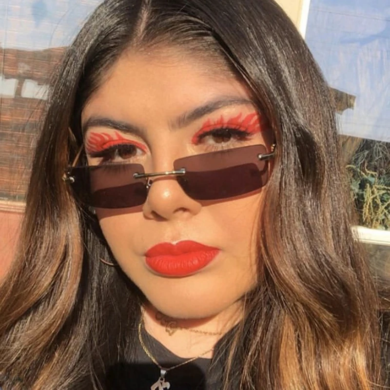 Солнцезащитные очки женские прямоугольные, без оправы, UV400, 2021