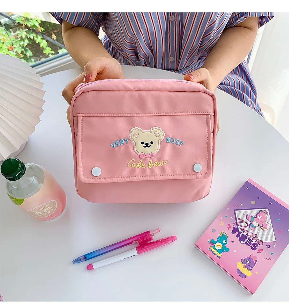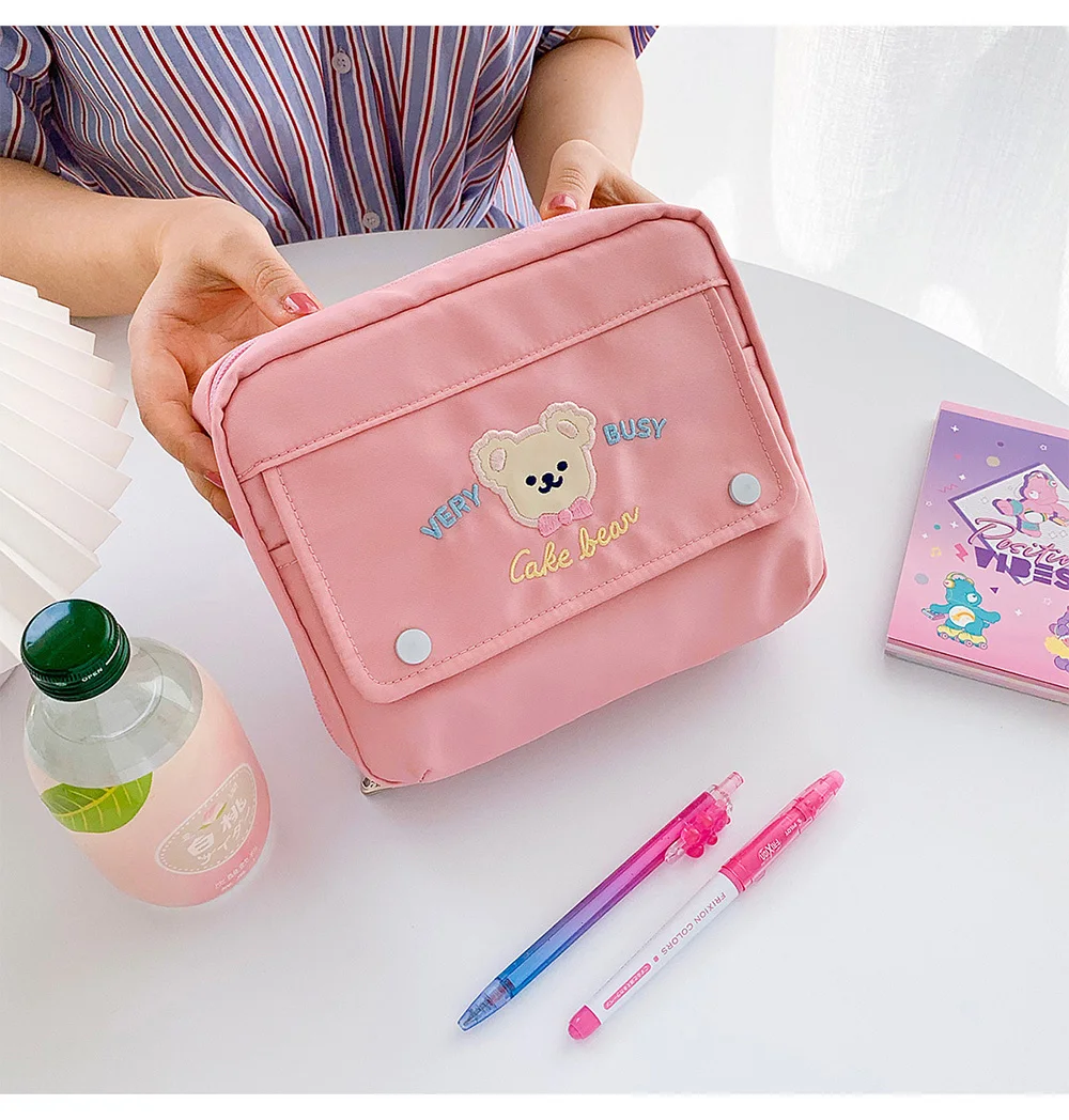 Kawaii Bear Пастельная сумка для хранения, милый большой вместитель...