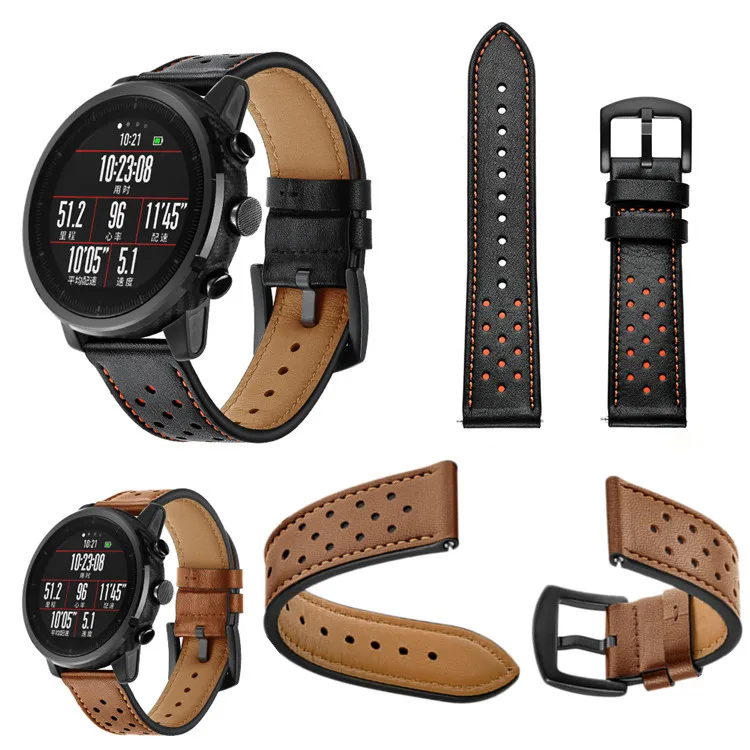 Ремешок из натуральной кожи для Amazfit GTR 42 мм 47 мм, браслет дл...