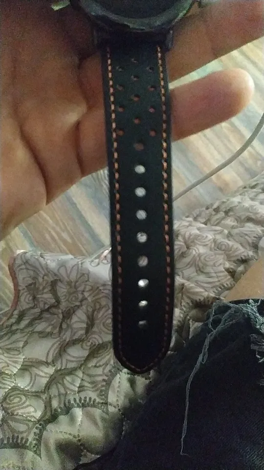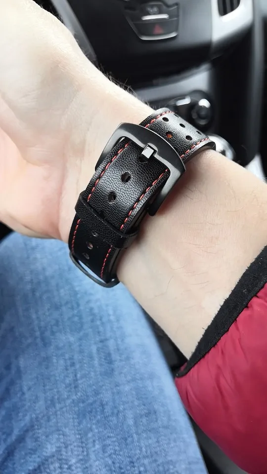 Ремешок достаточно качественно выглядит. Немножко жестковат, но, скорее всего, со временем размягчится. Сделан на достаточно большую руку. Посылка дошла быстро. К покупке рекомендую.