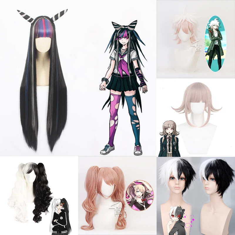 Женский длинный парик для косплея, черно-белый парик из Dangan Ronp...