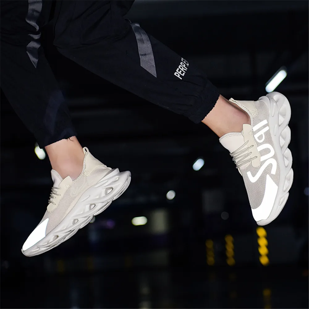 Мужские кроссовки, дышащая сетчатая спортивная обувь, мужские легкие Светоотражающие уличные кроссовки, модная амортизирующая спортивная обувь, Новинка