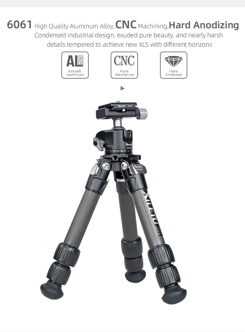 Тренога XILETU из углеродного волокна, со съемной шаровой головкой, Вращающейся на 360 , Настольная мини-подставка для цифровых фотоаппаратов DSLR