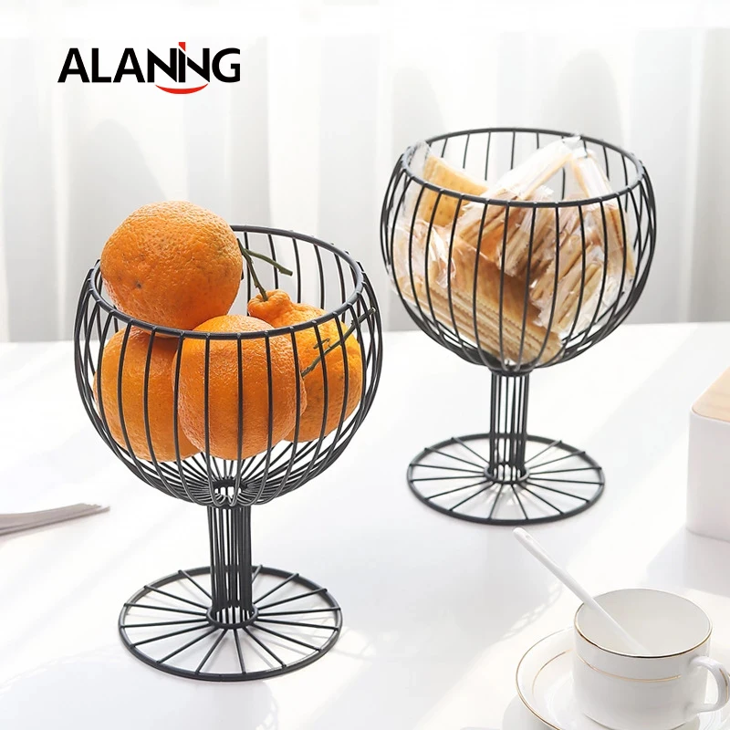 Геометрическая полая железная корзина в форме бокала для вина в скандинавском стиле, простая корзина для хранения закусок для дома, гостиной