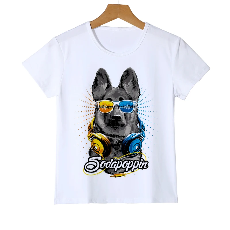 Детская футболка с мультяшным принтом собаки детская крутая собака с солнцезащитными очками повседневные топы с коротким рукавом Милая футболка для мальчиков и девочек