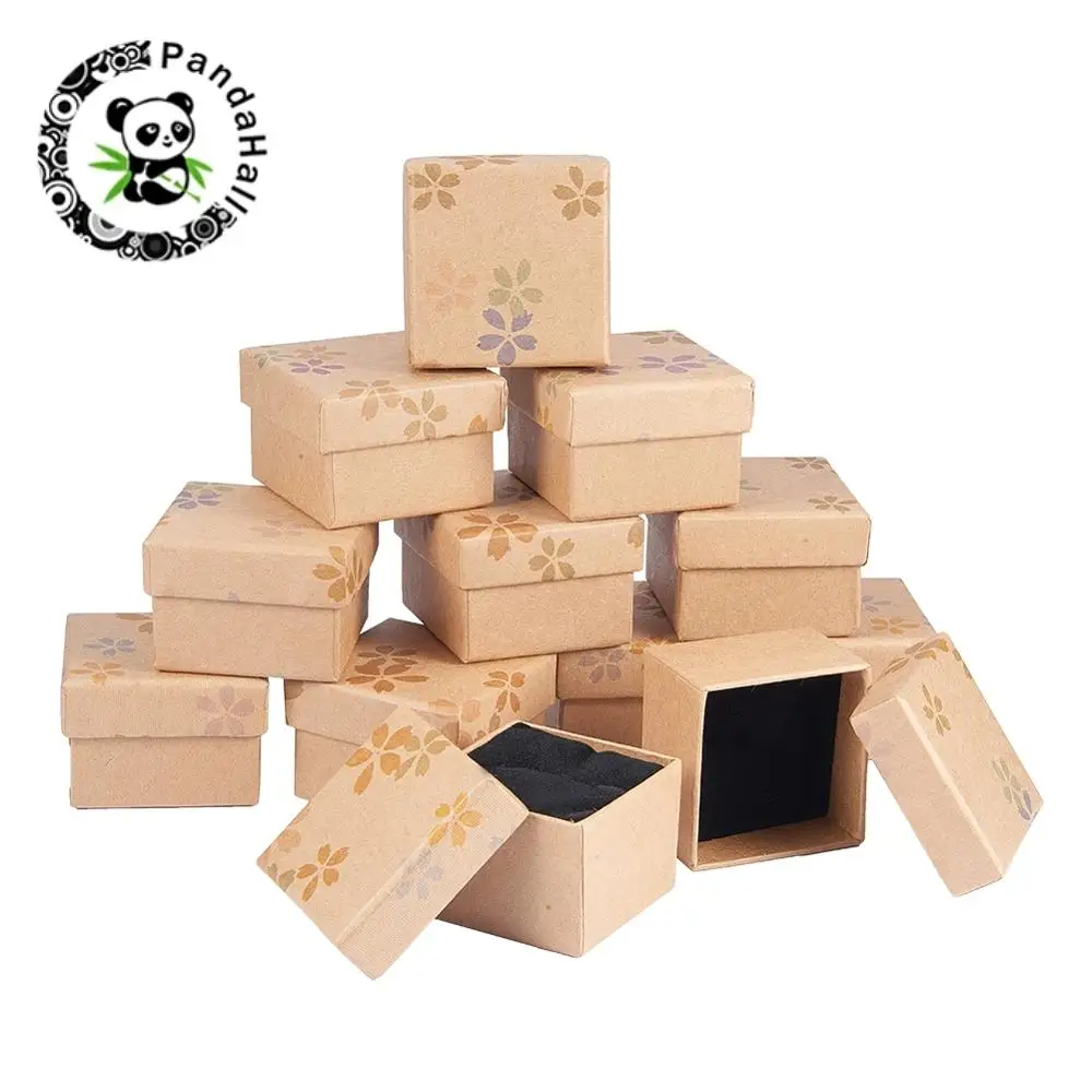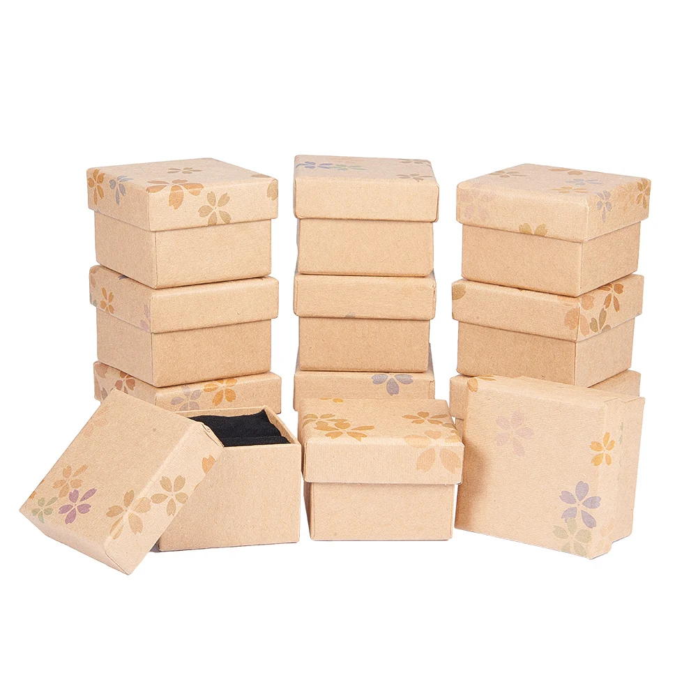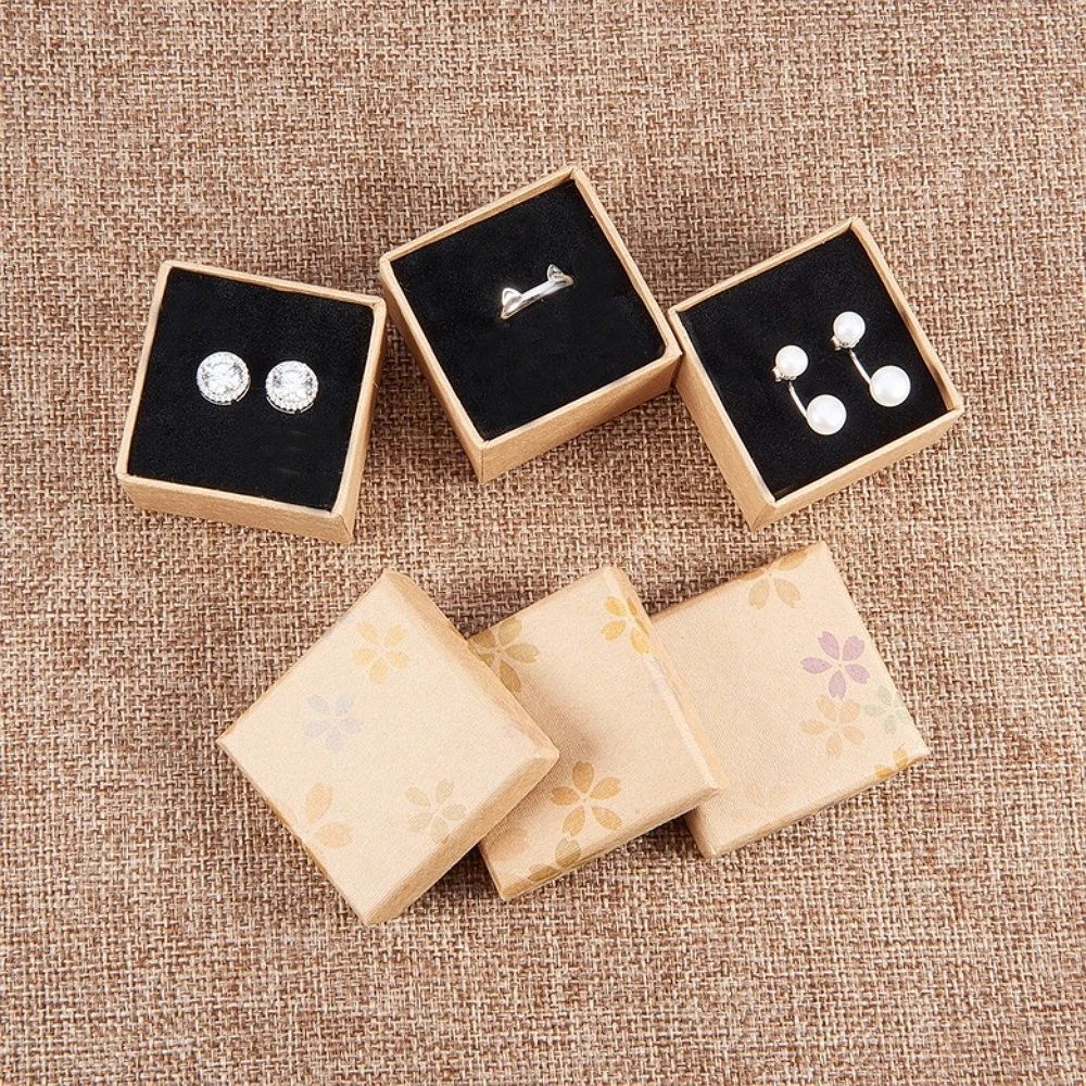 Подарочные коробки из крафтовой бумаги 24 шт., коробки для колец, ожерелий, подвесок, серег, картонные коробки с цветочным узором, упаковочный чехол для браслетов и браслетов