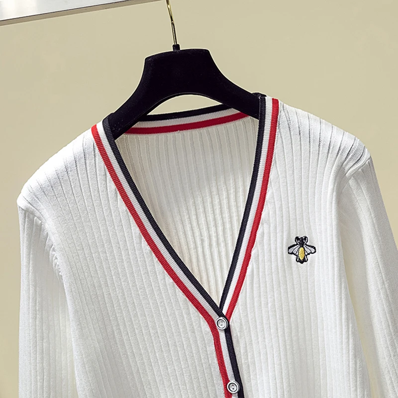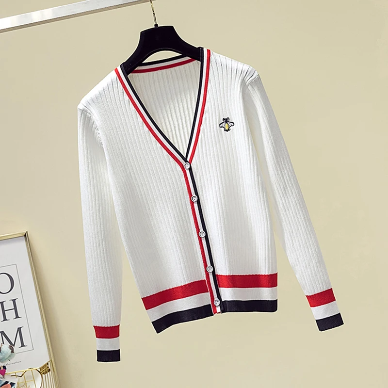 Женский Кардиган с длинным рукавом и V-образным вырезом, женские свитера с вышивкой, корейский женский свитер, трикотажная одежда, белые и черные топы, осень 2020