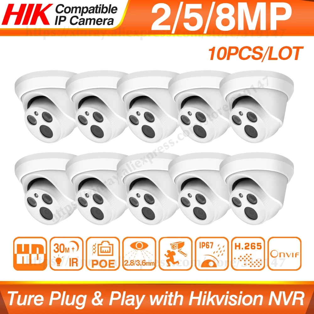 Hikvision совместимая 5MP купольная IP-камера POE 8MP домашняя камера видеонаблюдения 1080P IR 30m H.265 P2P Plug play безопасность 10 шт.