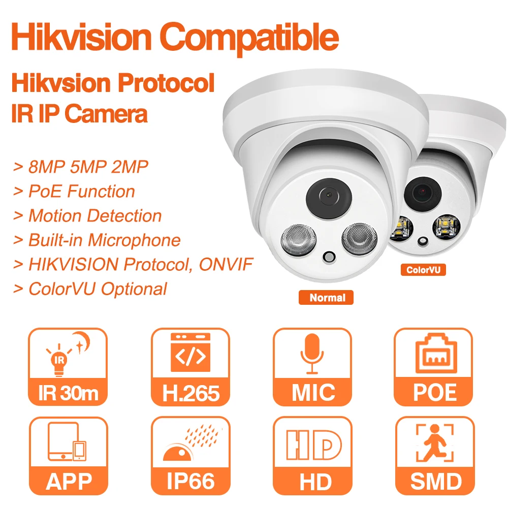 10 шт./лот HiСовместимость с kvisionПриветKvisionКамера Protocl 2/5/8 МП HD H.265 POE камера ColorVu опционально Onvif P2P Обнаружение движения металлический купол IPC Поддержка всех HIK NVRПоддержка Hikvision Protocl Hikvision NVR