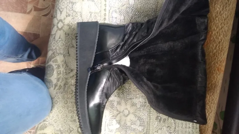 Сапожки легкие, смотрятся аккуратно, не очень теплые - для слякотной погоды около нуля. На узкую стопу, на широкую будут жать, но на икрах есть дополнительная молния, так что на полные икры будет удобно. Продавец сработал очень быстро. Покупкой довольна. В посылку продавец в качестве сувенира положил пару резиночек для волос. Продавца и товар рекомендую.