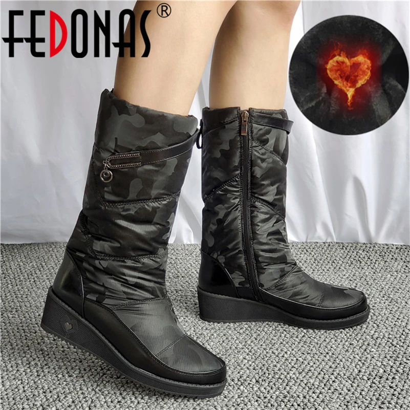 Женские сапоги на танкетке FEDONAS, теплые высокие сапоги разных цветов, на высоком каблуке, на осень-зиму