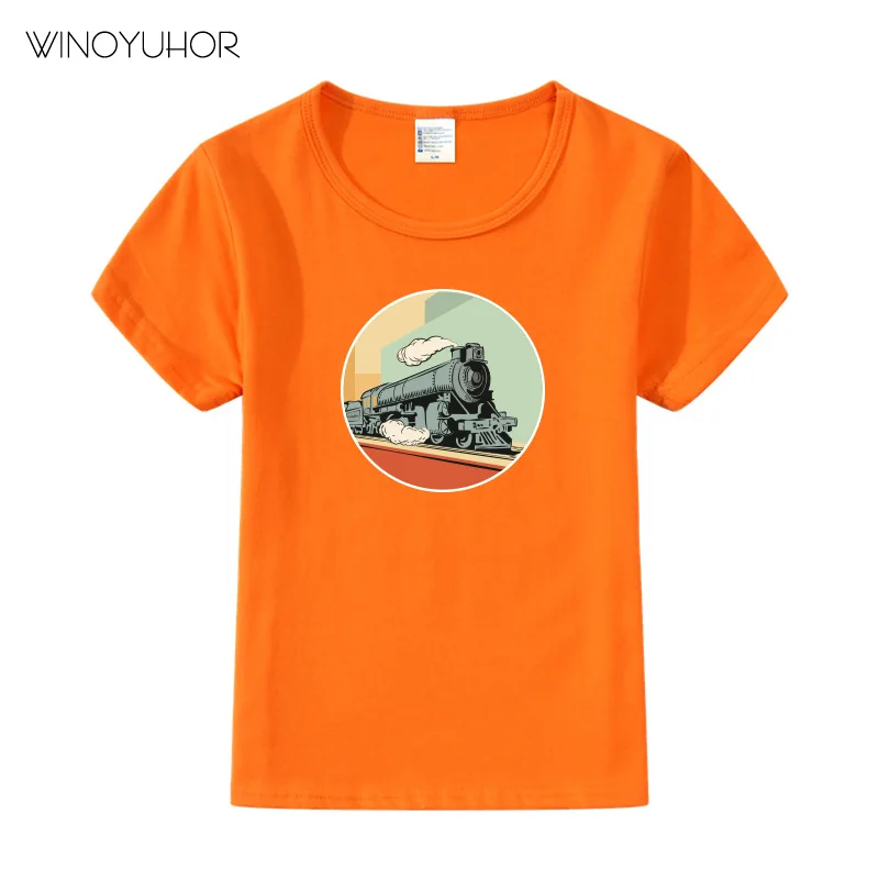 Футболка с принтом поезда для мальчиков и девочек, летняя модная уличная одежда с паровым двигателем, футболка с коротким рукавом, Детская футболка в стиле Харадзюку