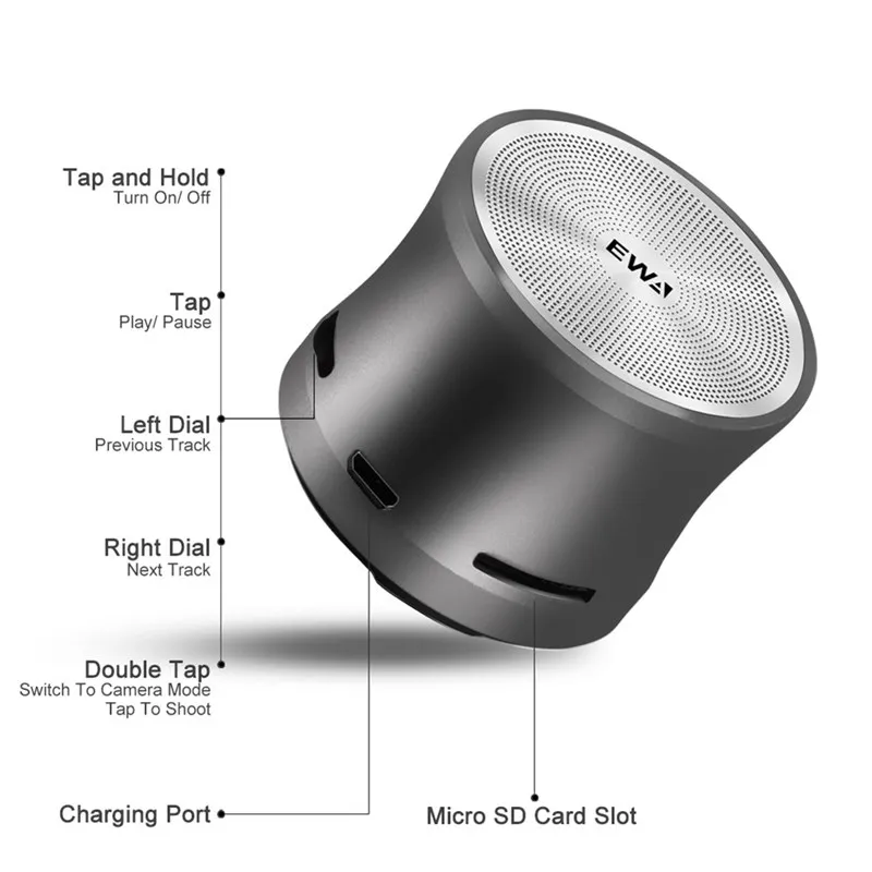 Кристально чистый без искажений SounВ таком крошечном пространстве нам нужно поместить драйвер, аккумулятор и все компоненты электроники внутри. Кроме того, благодаря нашей инновационной технологии динамик EWA A109mini оснащен пассивным радиатором, поэтому он выпускает такие удивительные басы, сочетание которых обеспечивает превосходное представление о высоких, средних и низких частотах и басах