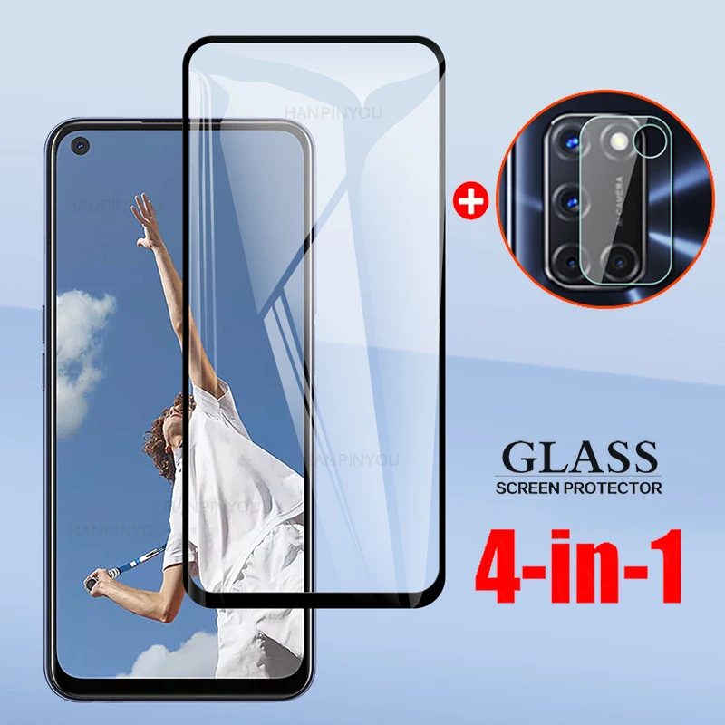 4 в 1 для A92 A72 A52 6,5 "Полное покрытие закаленное стекло для OPPO A 52 A 72 A 92 Защитное стекло для объектива камеры