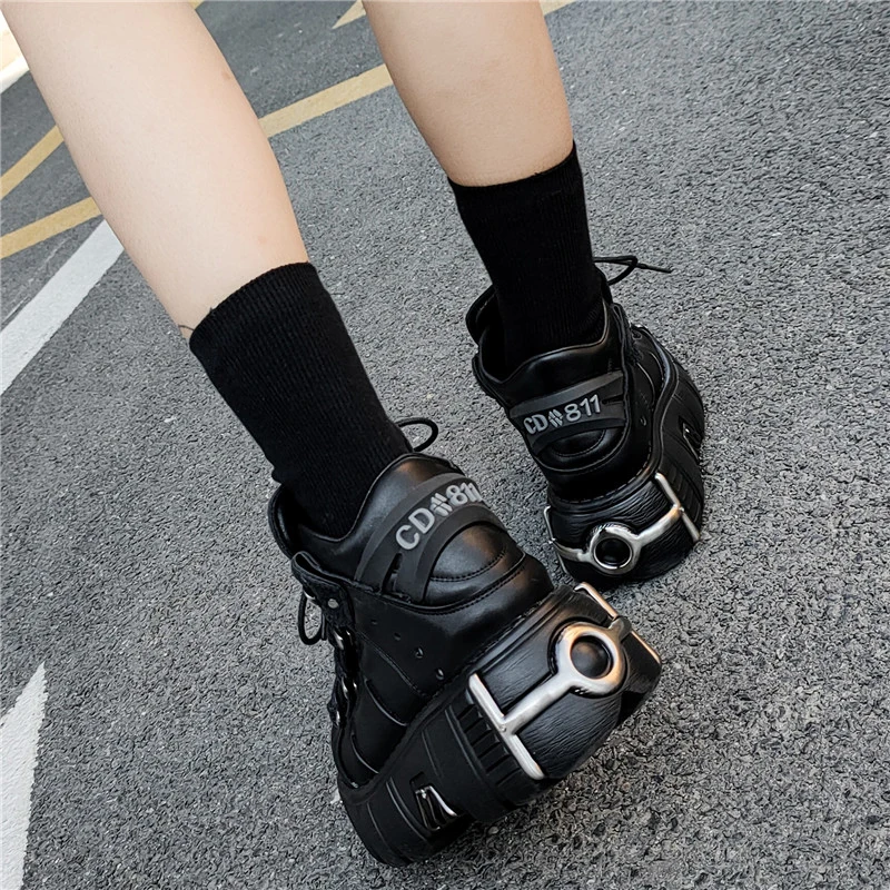 Женские ботильоны в стиле панк; Модные женские готические сапоги черные ботинки на шнуровке; Обувь на платформе; Botas Para Mujer