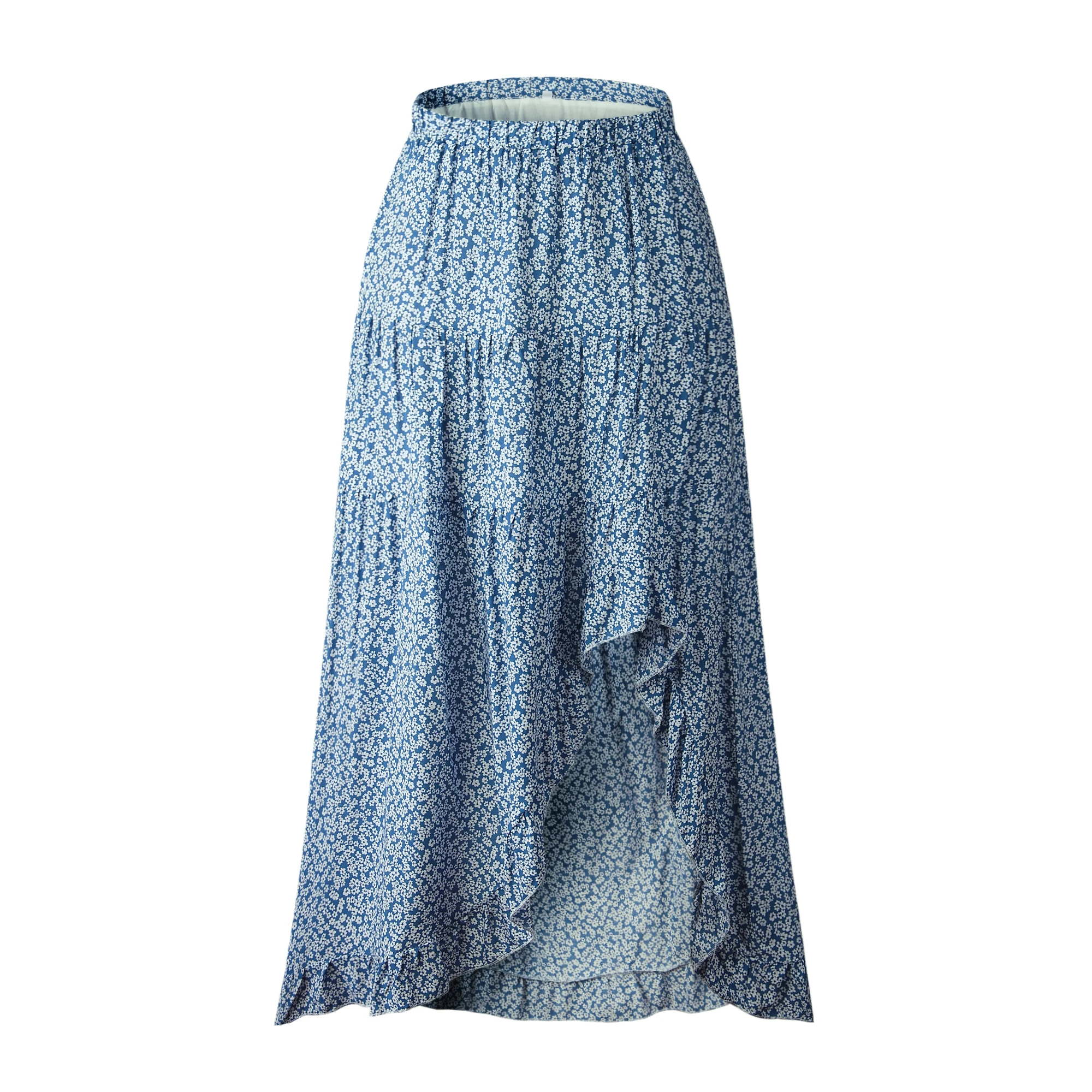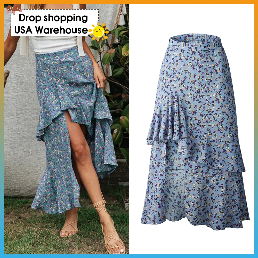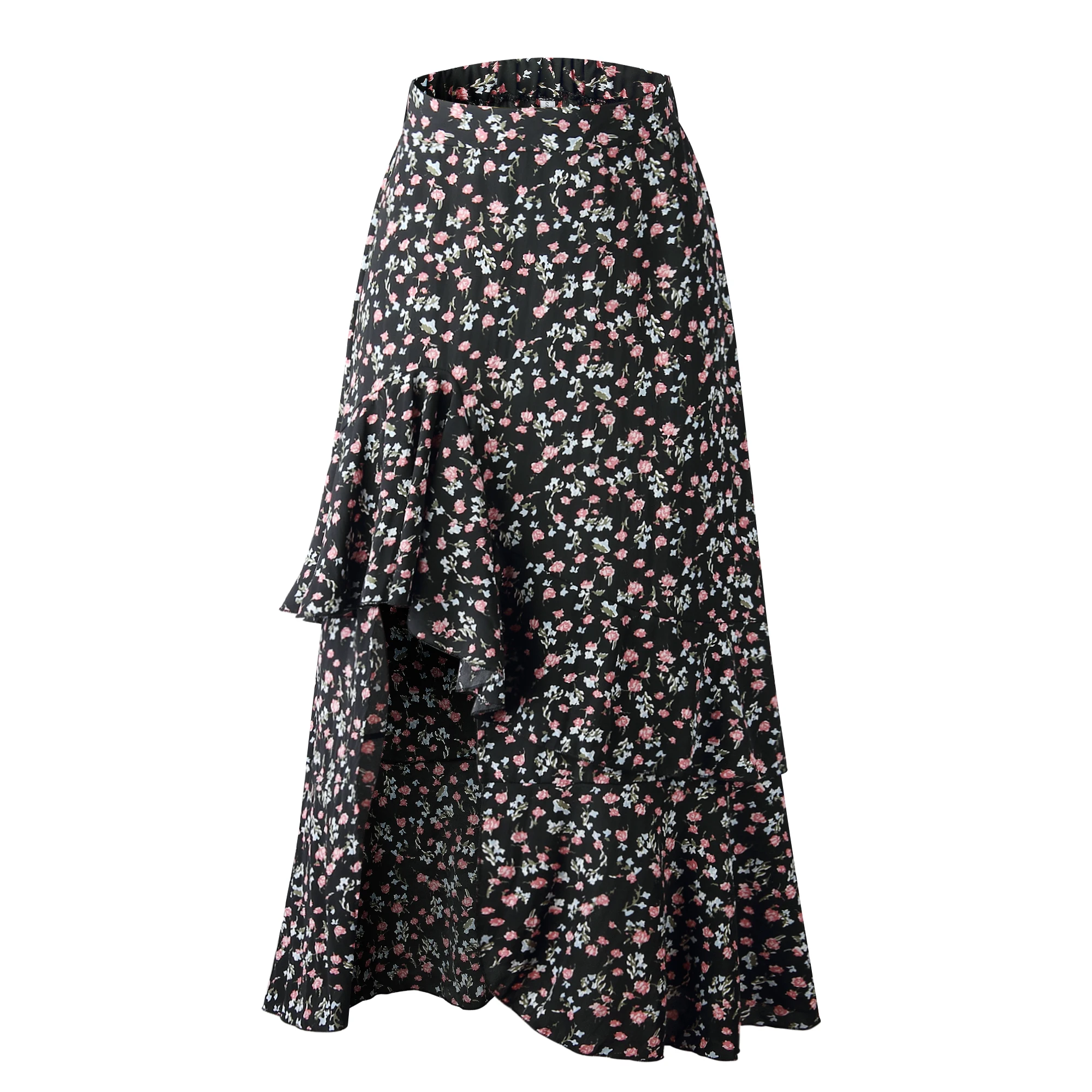 OUSHANG женские летние 2020 Элегантные повседневные длинные юбки Бохо для пляжного отдыха женские юбки с цветочным принтом с высокой талией юбки с оборками