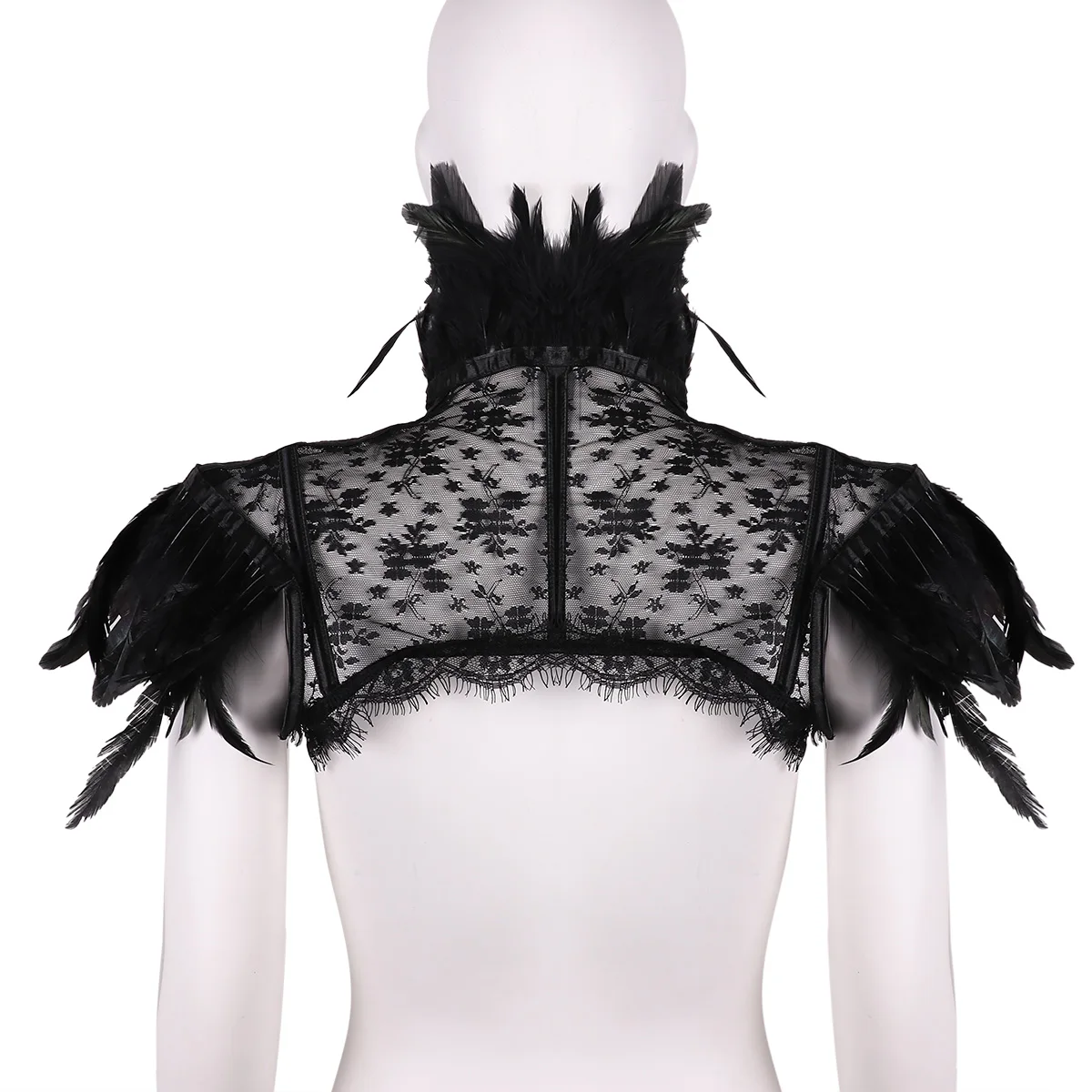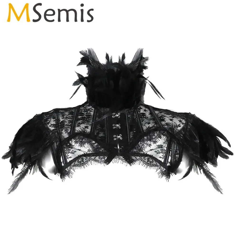 Пиджак-болеро mжение Женский, готический, с перьевым воротником, кружевная накидка на плечо, жакет, топы, костюмы для вечевечерние на Хэллоуин, Ретро винтажный панк
