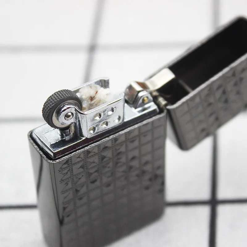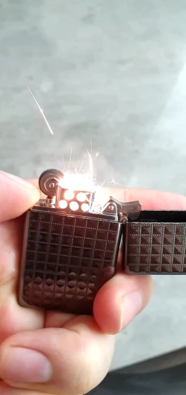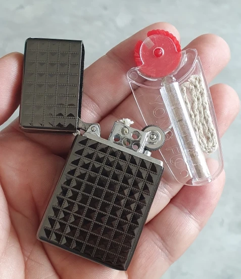 Очень хорошо сделанная зажигалка. Обработка превосходна с жесткими допусками. Пружина кремневой трубки сильна. Поставляется с дополнительными флинтами и фитилем. Размер соответствует размеру зажигалки zipo slim style.