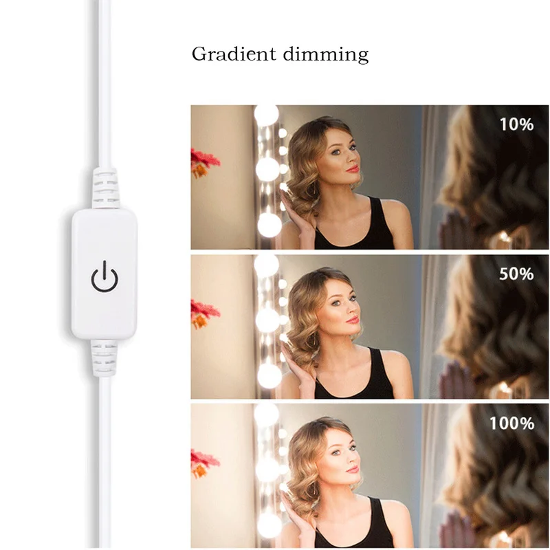 2020 светодиодный зеркальный светильник для макияжа 5 В, лампа, голливудский туалетный светильник, бесступенчатый настенный светильник с регулируемой яркостью 2, 6, 10, 14, набор ламп для туалетного столика